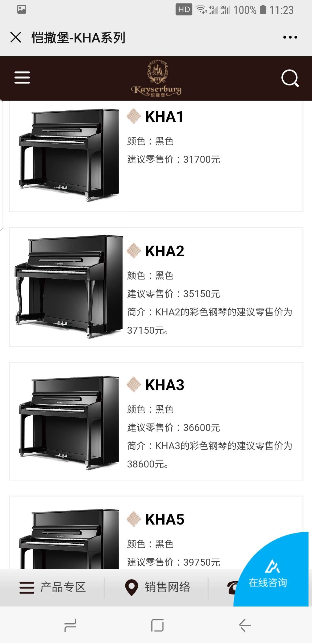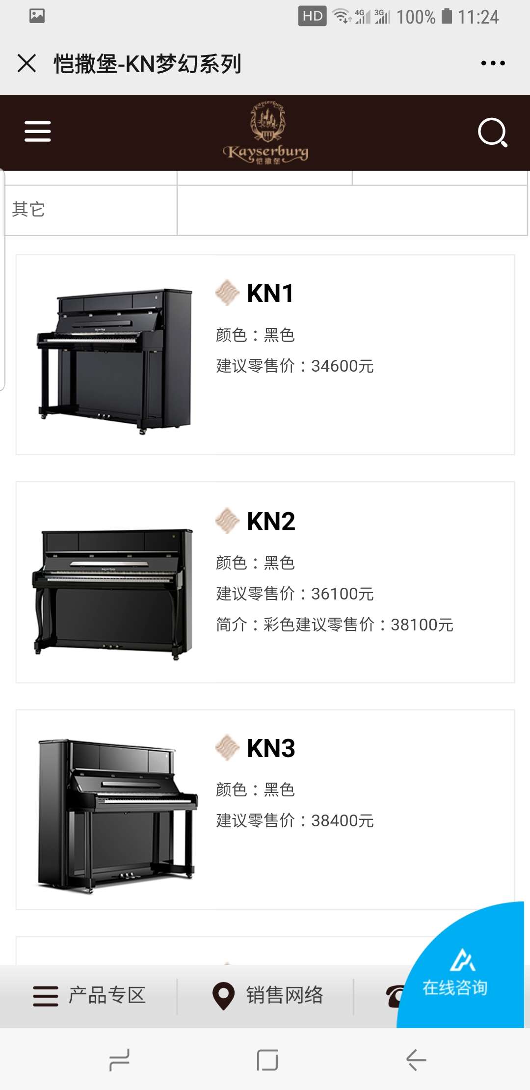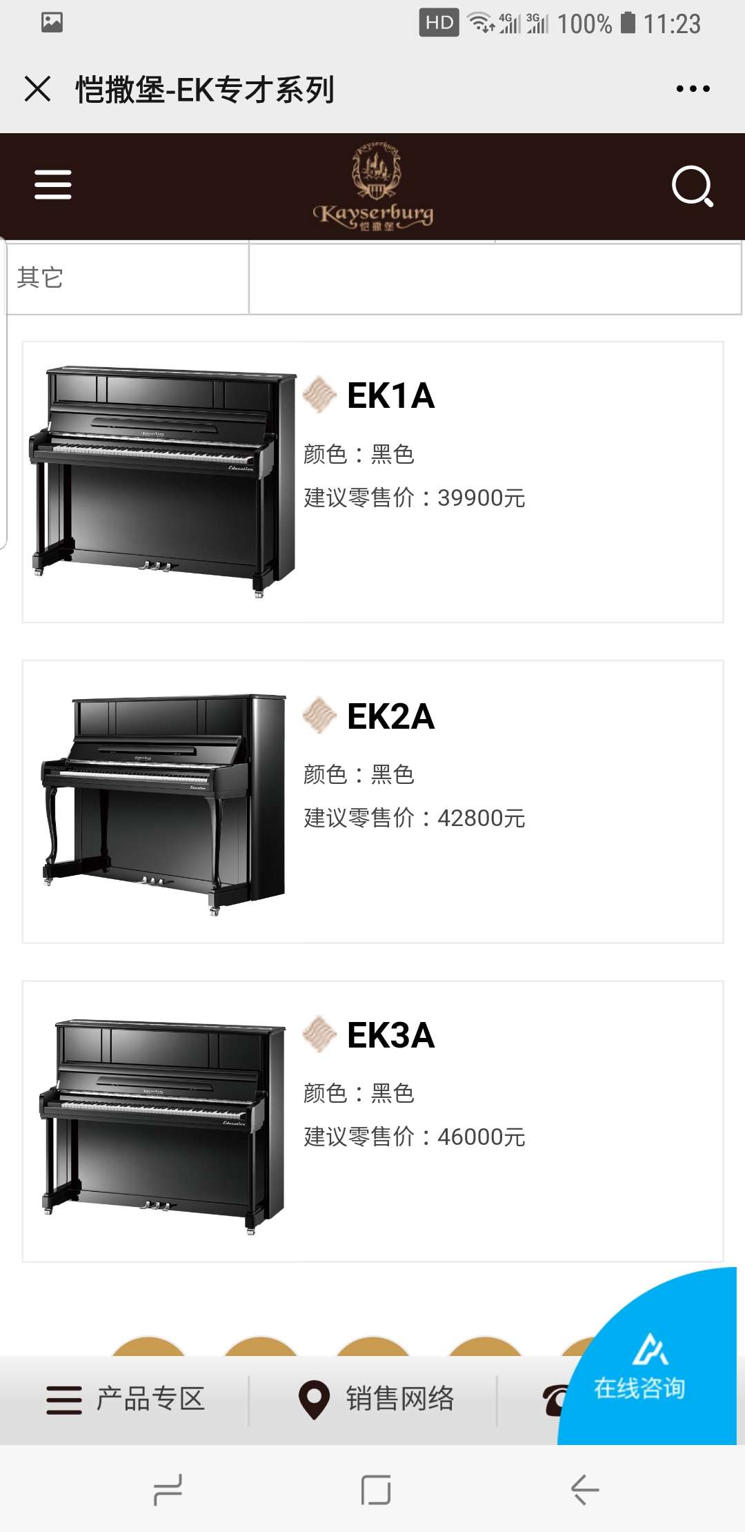 另有专业恺撒堡钢琴7台参加样品处理活动,型号有KHA1 KHA2 KHA3 专才系列 EK2A EK3A 梦幻 KN1S 白色新款KX1