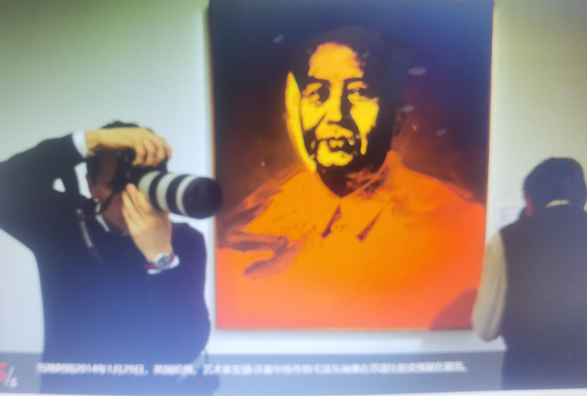 这幅画像作者是美国波普艺术家沃霍尔,他绘制的伟人毛泽东主席画像从来没有在中国露过面,而是在英国大英博物馆展出,可能是有原因的,我个人认为他的这幅画,把主席口唇凃上了口红是红色,主席的中山装也变成了红色,我看后感觉这是对伟人的不尊,用黄红色彩绘画伟人像,不是美化而是不严肃的作画,如果是在文革时期,作者可能被批判,后果不可设想!今天我把在英国大英博物馆里展出的那幅画发出来,请网友们说说你的看法。。。。