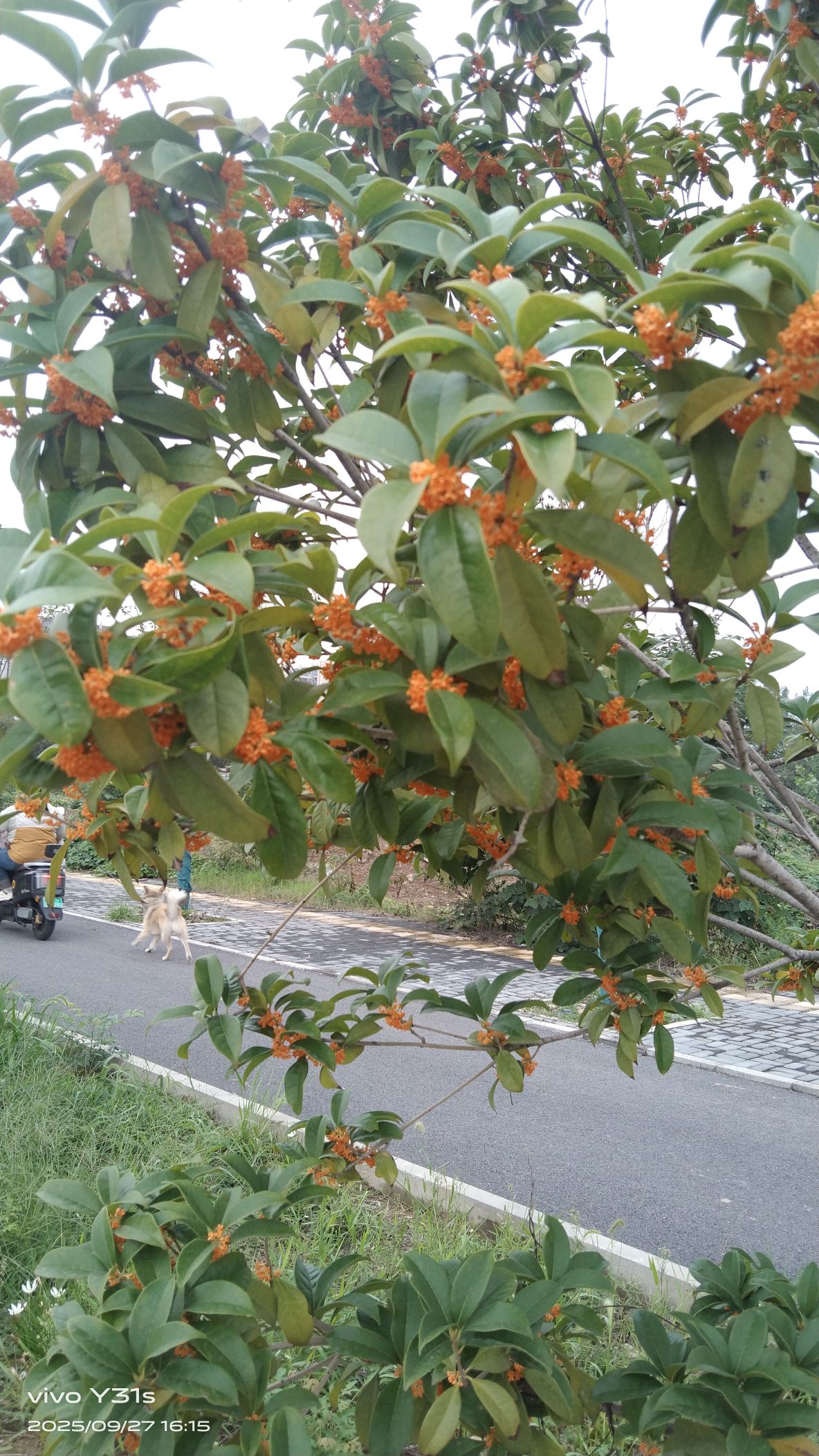 :桂花有黄色的是金桂,白色的是银桂,带红黄色的(如上图)是丹桂。
