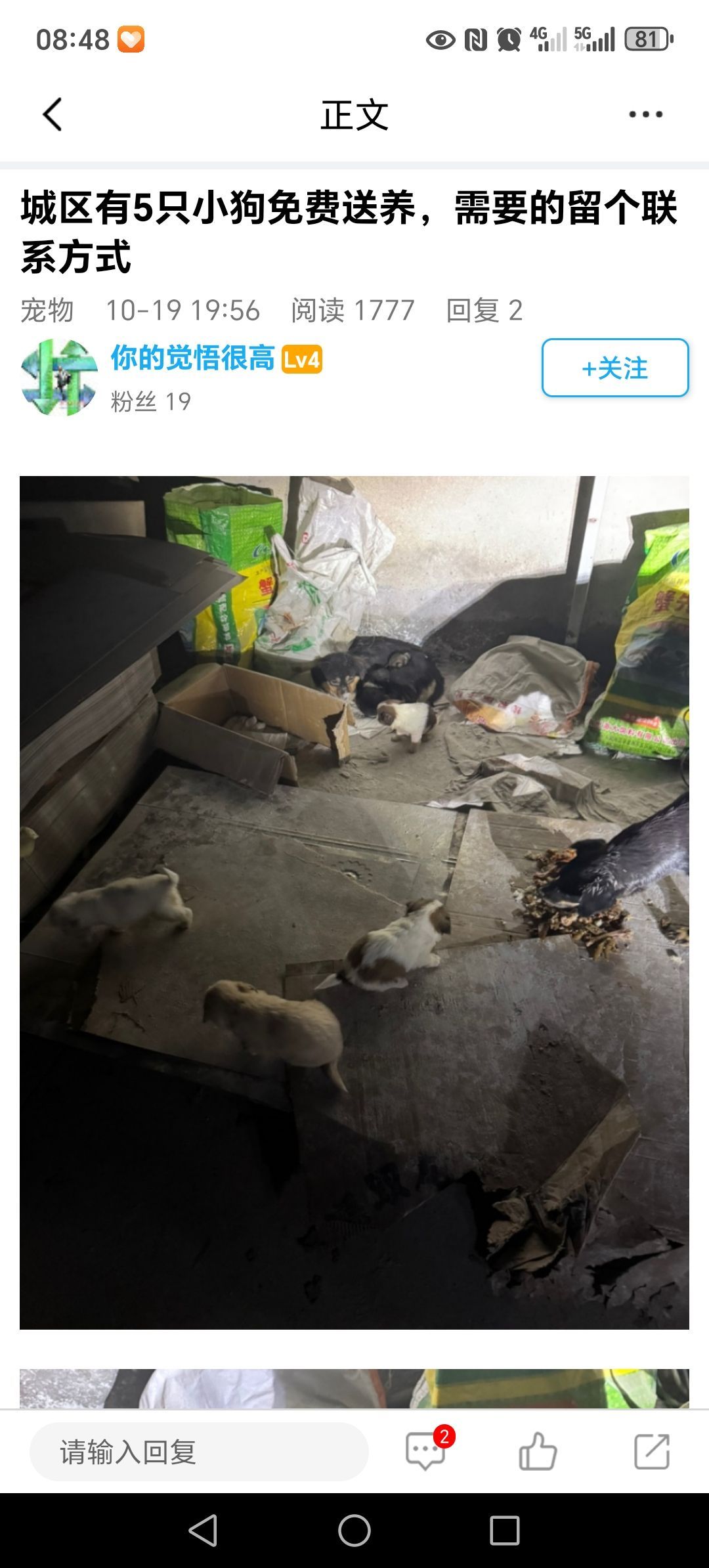 同胞们 老人一个人在家 想弄一只小土狗给老人养 最好是公狗 能长大一点的 长不大的串串就不要了 有院子养 谢谢大家了