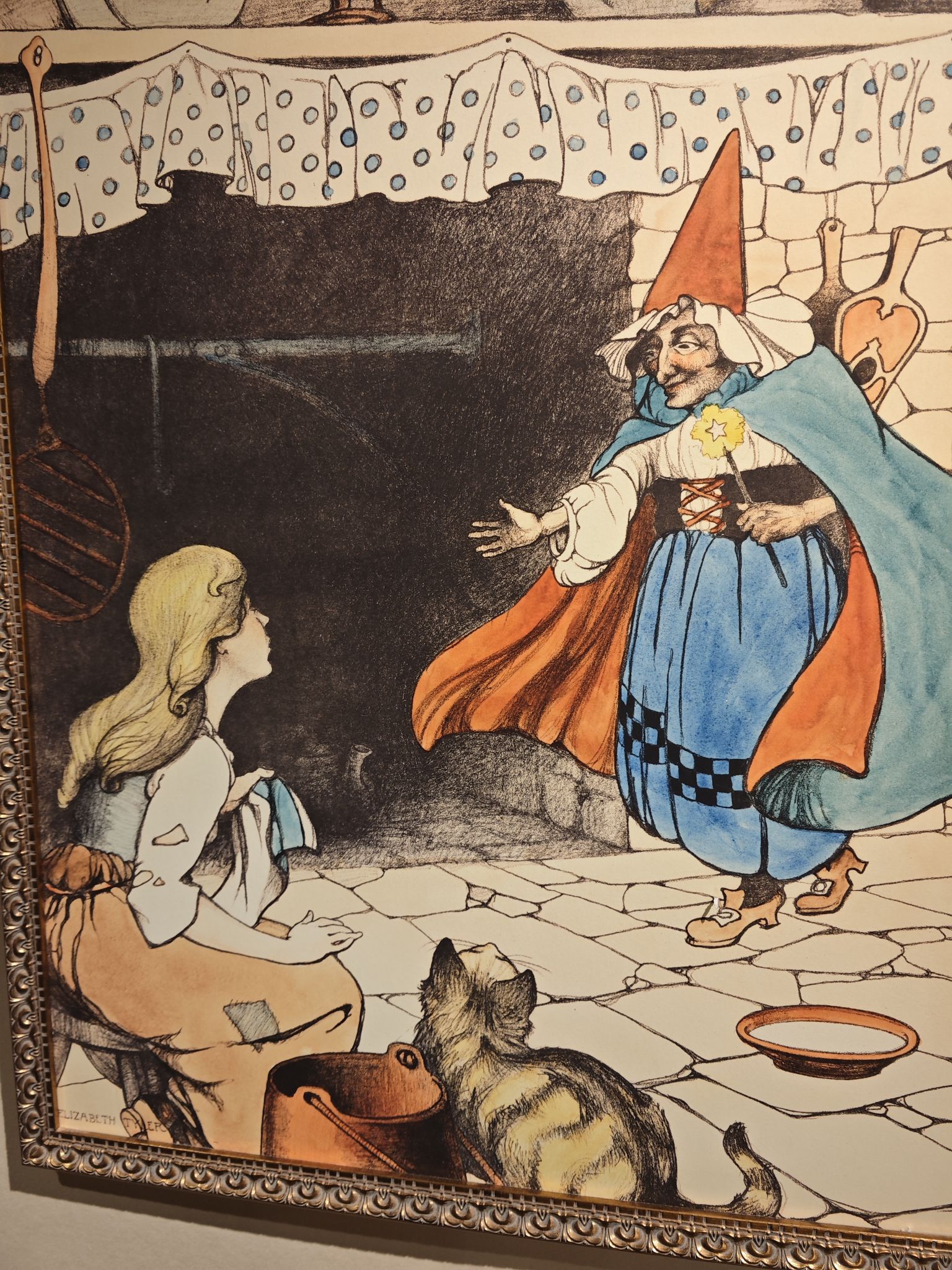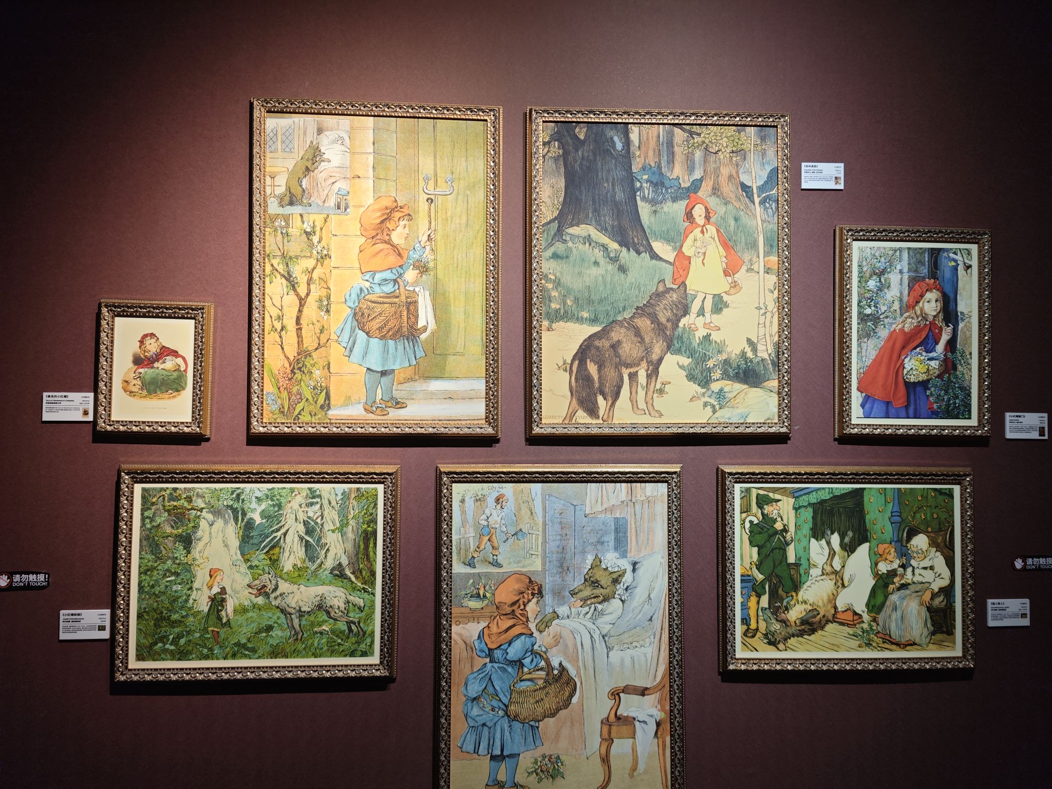 说到格林童话,没有人不知道。这是德国享誉世界的经典童话集册。里面比较经典也是这次展览上重现的有:小裁缝,白雪公主,灰姑娘,牧鹅姑娘,糖果屋,睡美人,小红帽,等等。每个故事都精选了很多幅经典的不同版本的插图帮助我们回忆这些童话故事。很多细节在观展的过程中都已经遗忘或者模糊了,但是这些经典的故事情节依然历历在目,触及心底那个美好的童话梦。