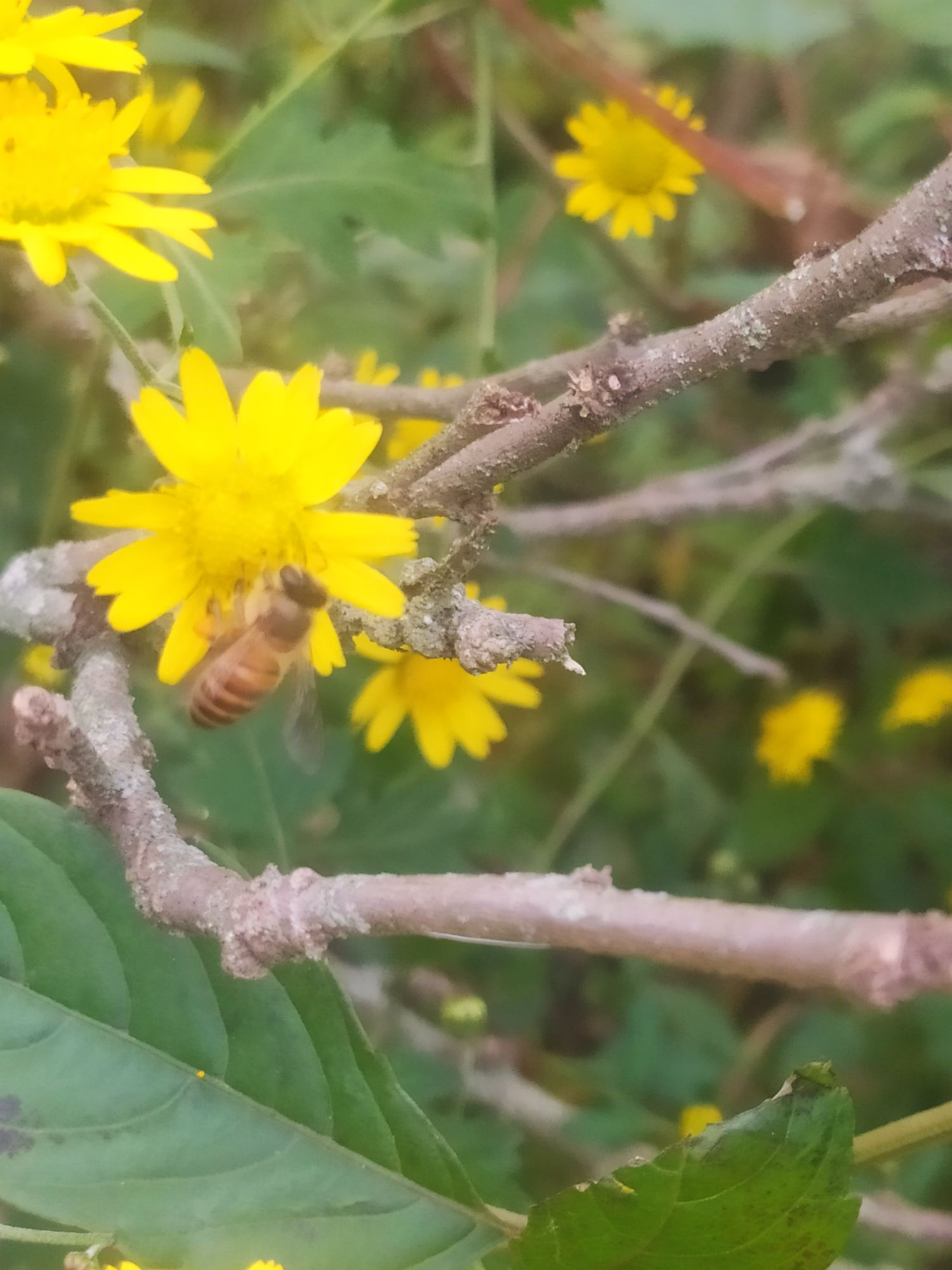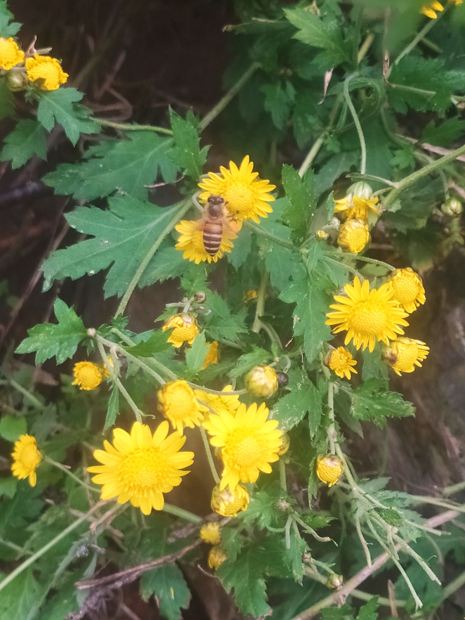 :我把蜜蜂都分散放在四个地方,荆门农村那边没什么人摘野菊花,我们村的人特别喜欢摘野菊花