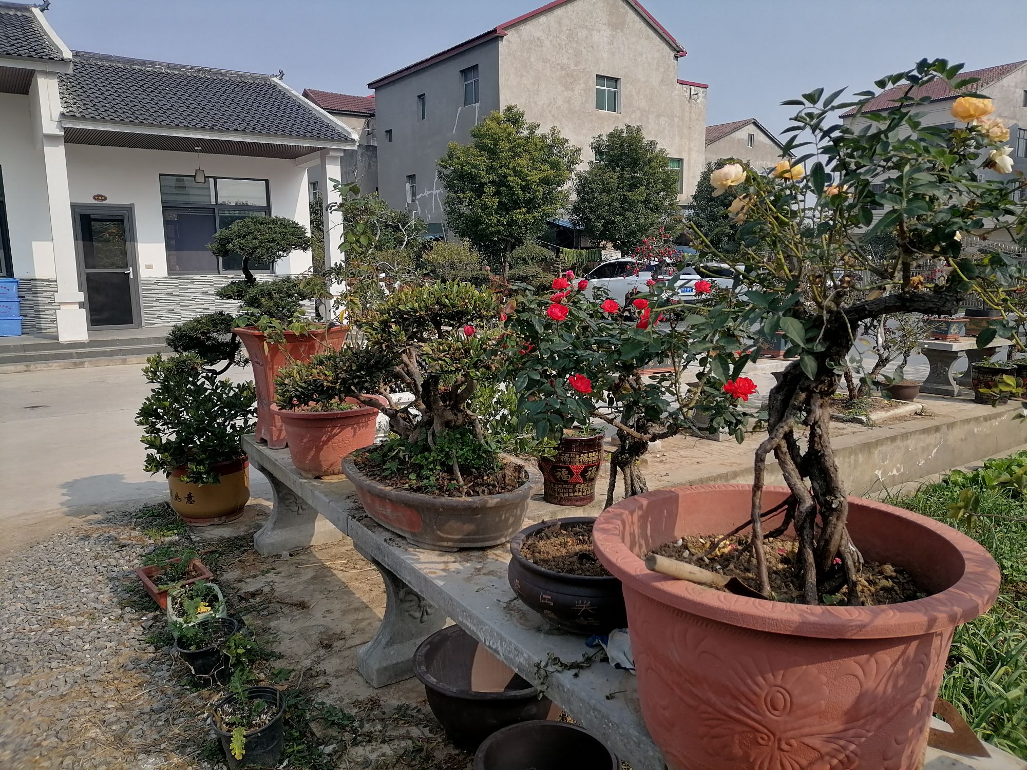 院门朝东,左侧紧邻一户三层小楼。右侧,两株对节白蜡并立,枝干遒劲;三株玫瑰点缀其间,一丛刺玫斜倚不锈钢围栏,平添几分野趣。