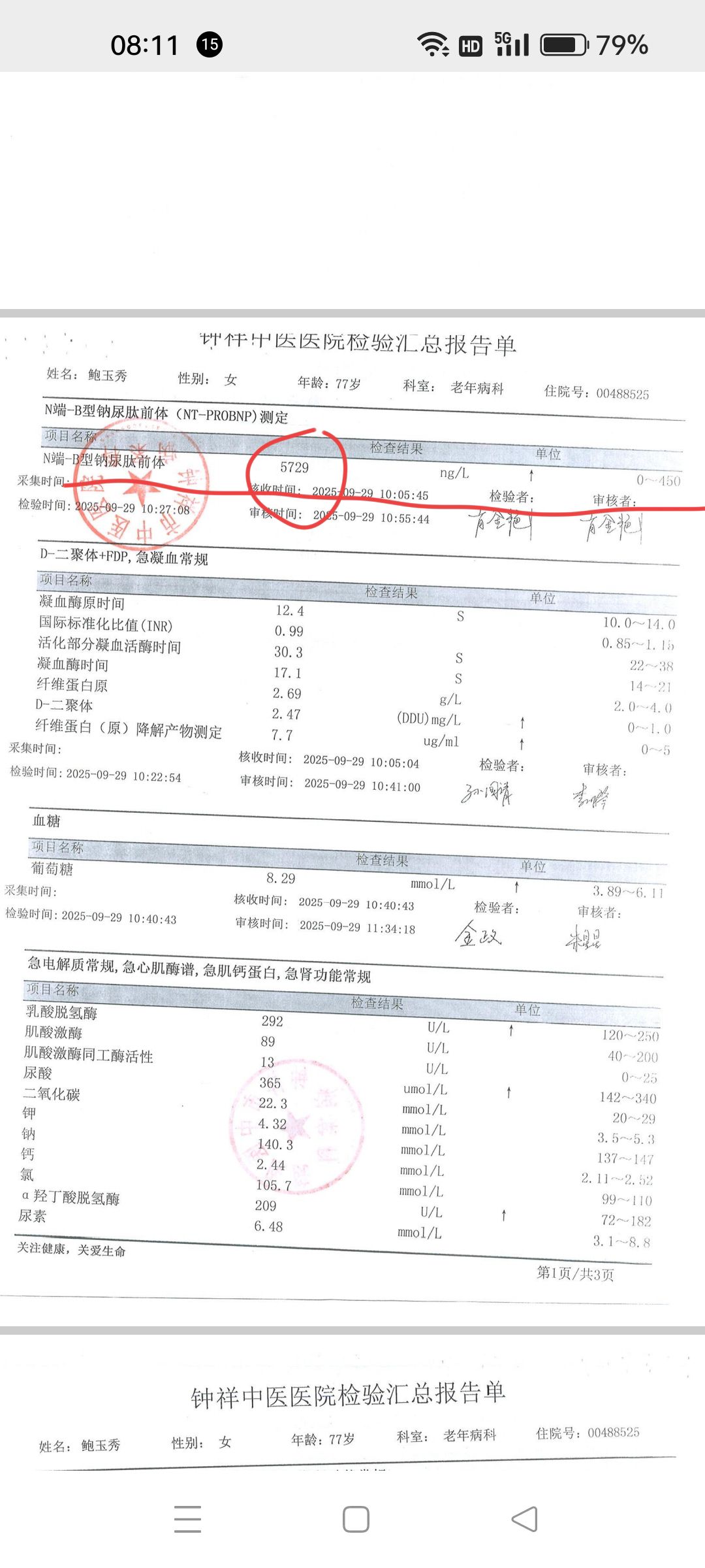 1.钟祥市中医院在我母亲入院当天检查出n端_b型纳尿钛前体5700多,这个数据说明患者的心脏正处于非常危急的状态,很可能正在经历急性心衰发作或者慢性心衰急性发作期,这个数字不是一个可以等待或者观察的信号,意味着患者需要立即进行强化制疗。当天就下了病重通知书。但当天医院却没有做任何的关于心脏的救治,也没有进行会诊,拿出合理的救治方案,白白耽误了一天一夜的救疗时期。任由病情加速发展,导致第二天早上因缺乏及时救治而心衰倒地,最终丧失生命。