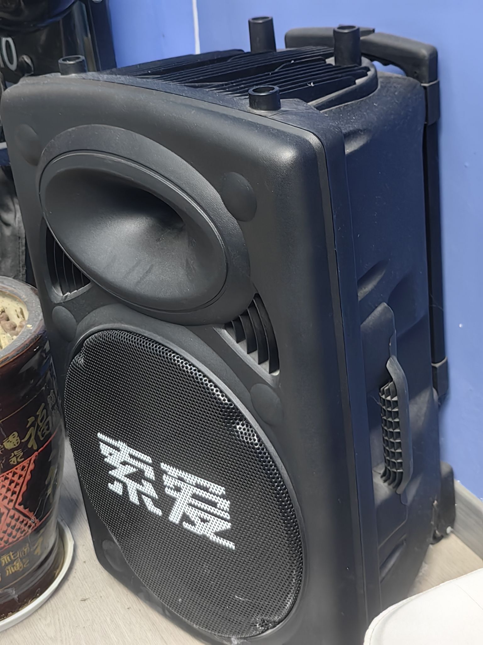 15寸移动音响。9.9成新,原价468,现价358,可小刀。蓝牙连接,两个话筒。联系电话13451215227