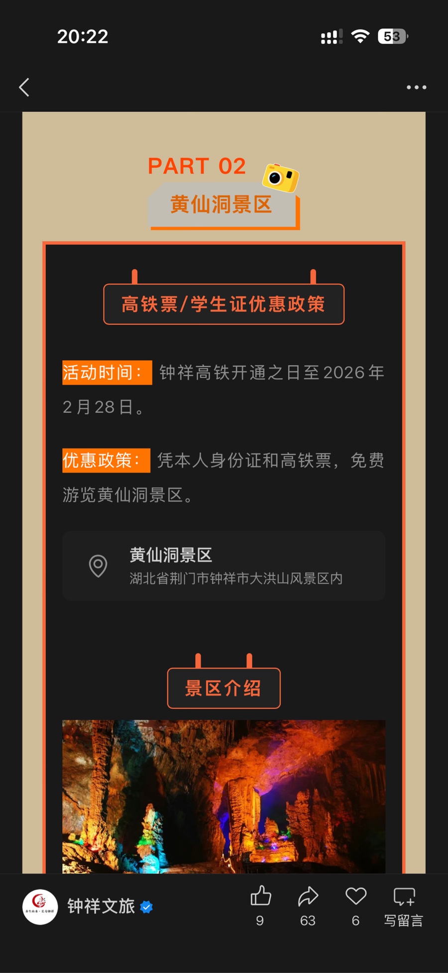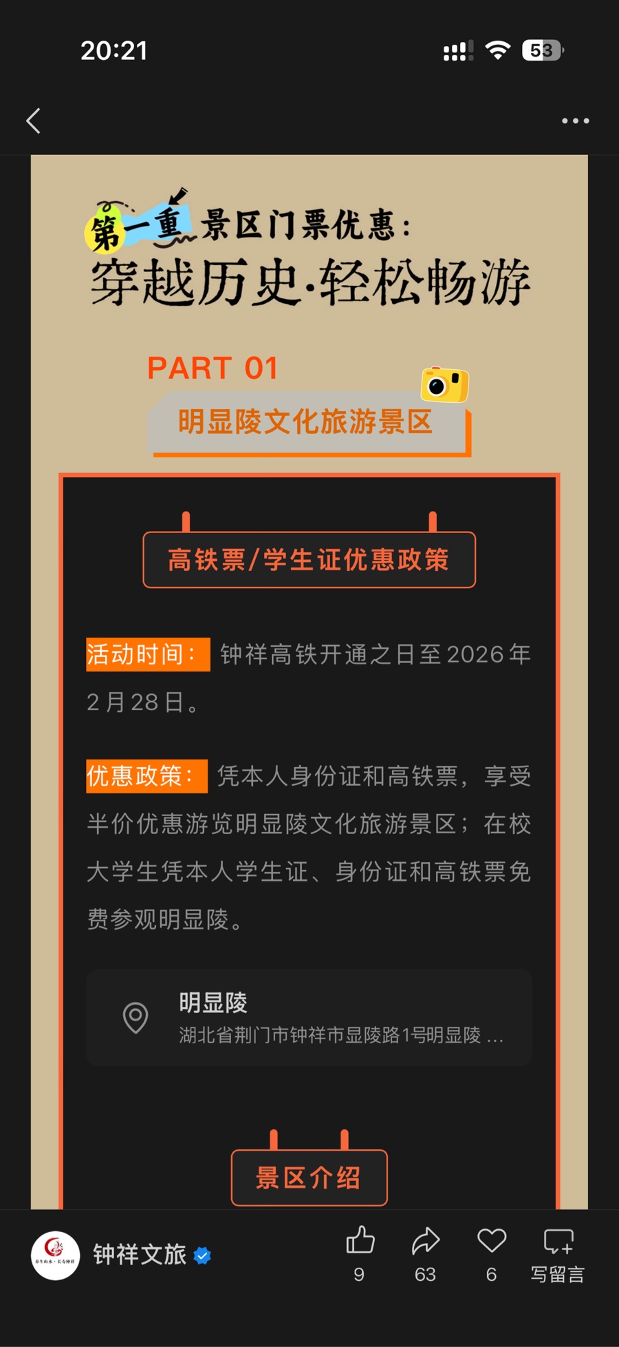 那么钟祥本人是否也能凭高铁票免费看景点呢?