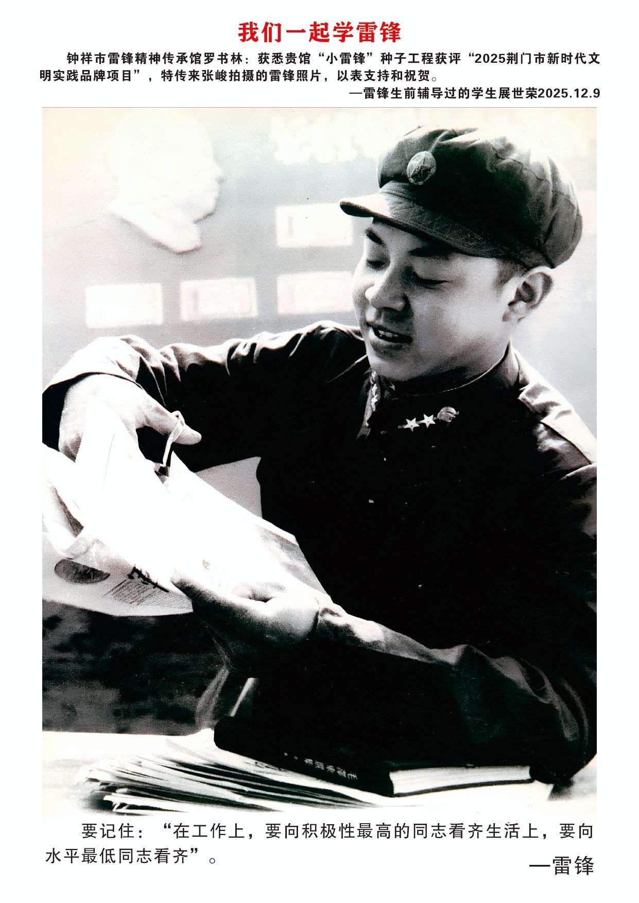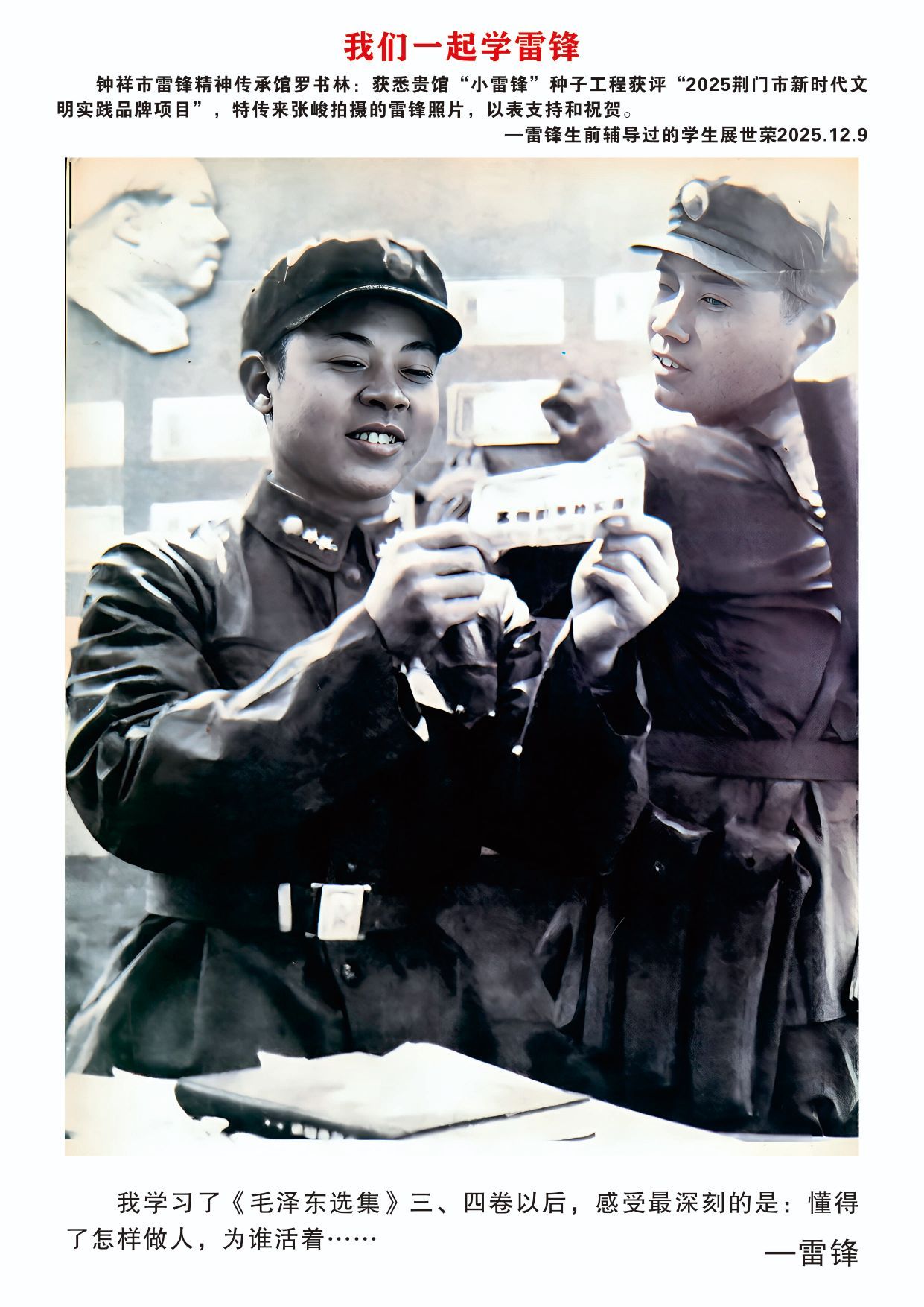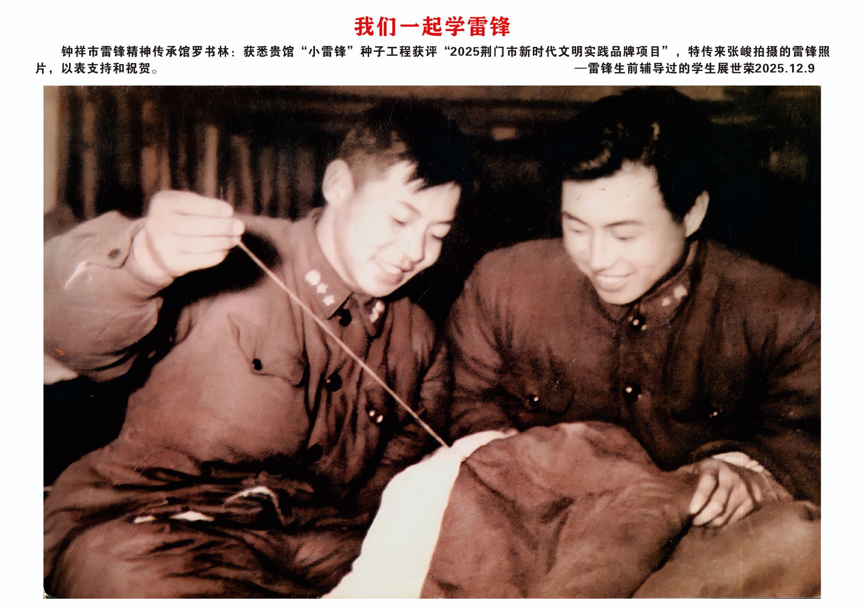 感谢雷锋生前辅导过的学生展世荣传了张俊拍摄的雷锋照片