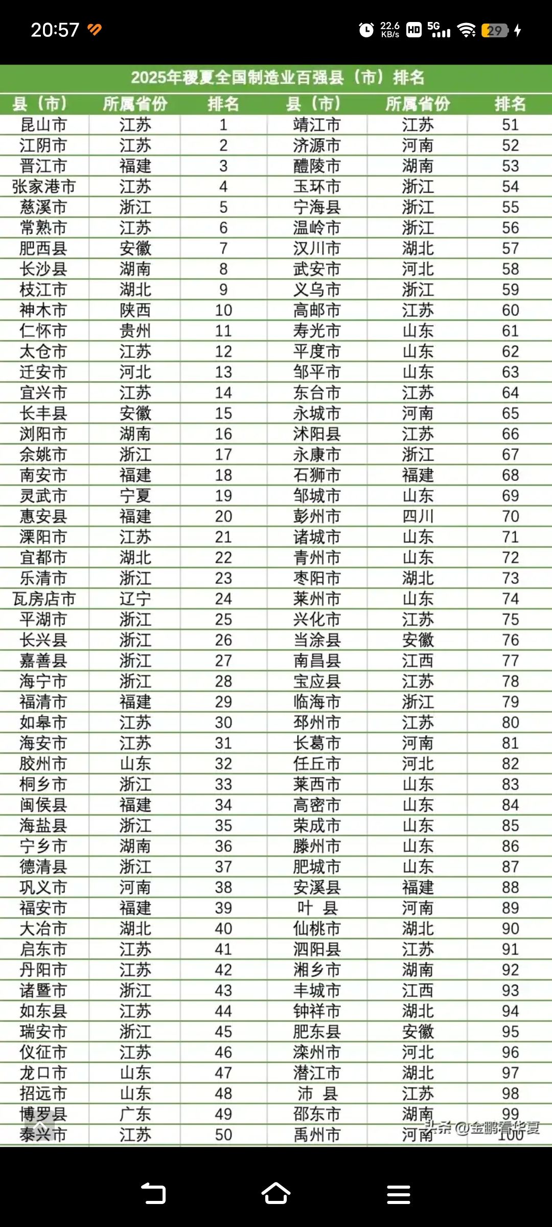 今年,我们钟祥市被稷夏这个权威评估机构评为2025年全国制造业百强县市之一。对此我由衷的感到高兴,制造业强就可以带动不少人就业,大家都有钱赚都有饭吃,这个是值得开心的事,值得祝贺的事。