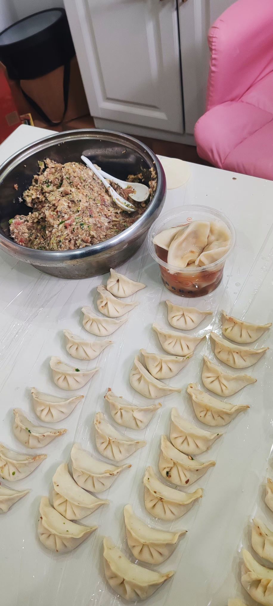 等忙完了,大家坐下来一起吃饺子,我刚咬了一口,就觉得鲜嫩可口,比以往在山东饺子馆吃的好吃太多了,不愧是我们自己动手做的。真真是自己动手,丰衣足食哈。