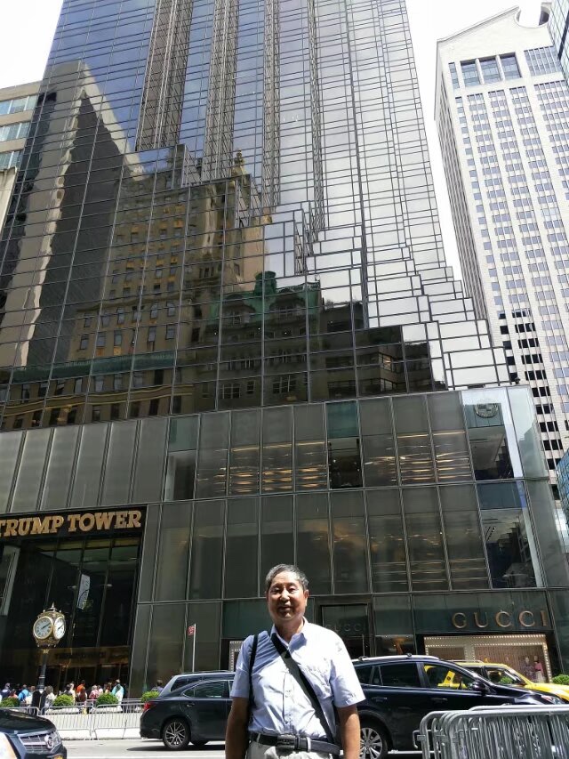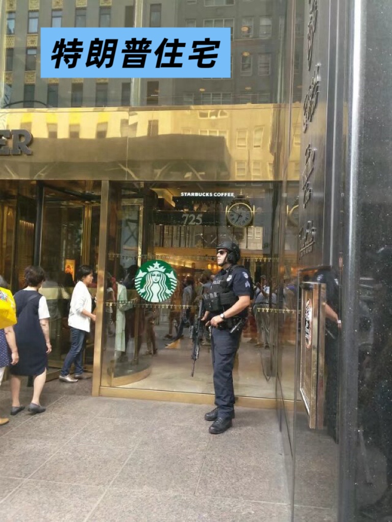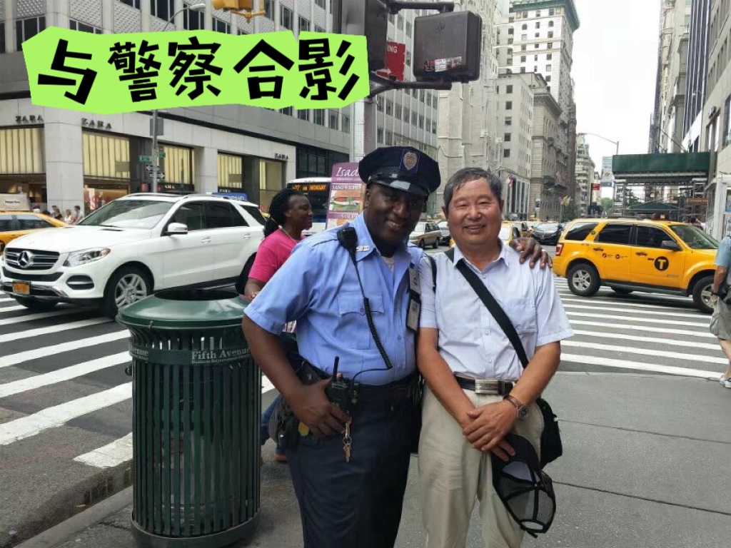 一行至途中,偶遇特朗普宅邸,宅邸外围岗哨林立,安保人员严阵值守、戒备森严,别样的肃穆光景,成了纽约街头一抹独特印记。途中恰逢一位执勤的美国黑人警察,他笑容爽朗,主动热情地与我招手招呼,还欣然合影留念,这份异国街头的温暖与善意,格外动人。我们还一同登临帝国大厦观景台,与游友并肩极目远眺,整座纽约城尽收眼底:街巷纵横如织,摩天高楼刺破长空,日光里的楼宇熠熠生辉,城市的蓬勃生机与万千盛景,皆入眼帘。