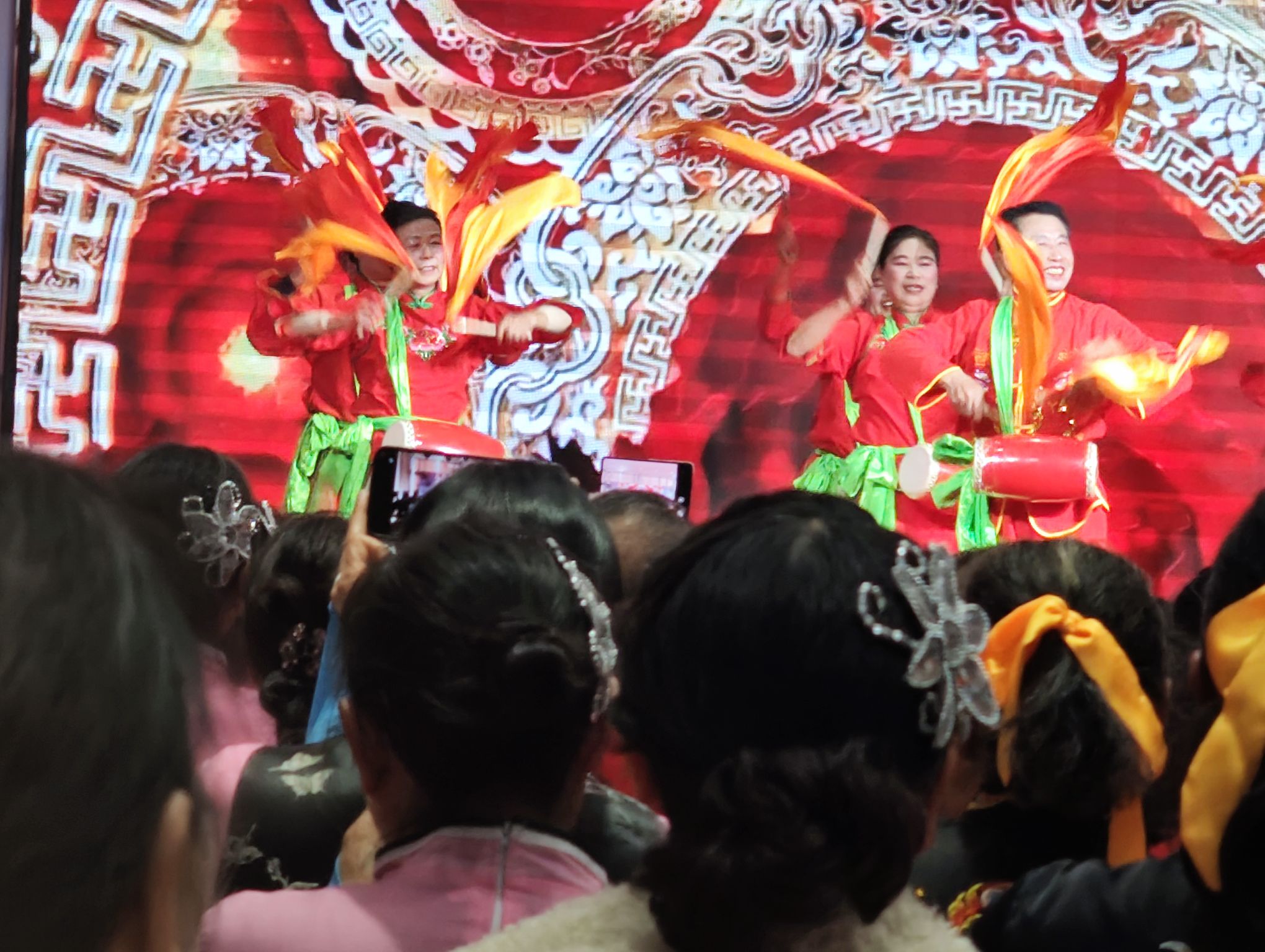 接着由官庄湖队太极队一曲腰鼓舞《欢聚一堂》拉开了一场由我们身边的太极拳友自编、自导、自演的精彩纷呈的“迎新春联谊会”的序幕