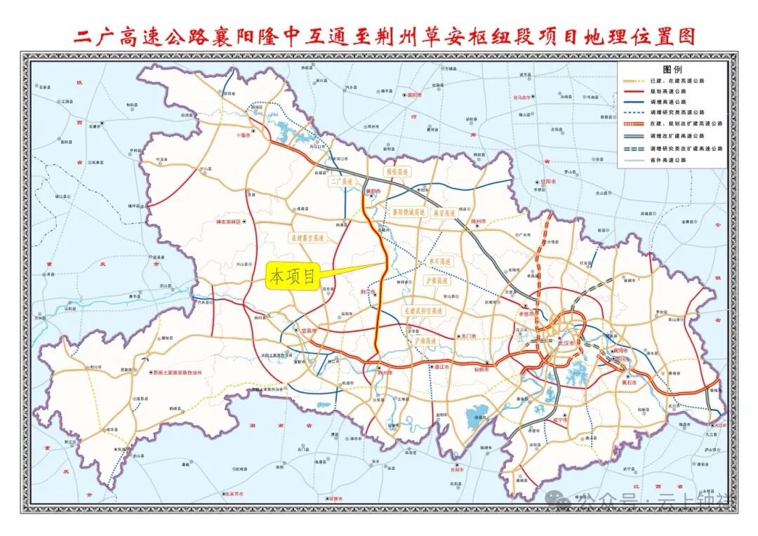 二广高速公路是国家高速公路网中南北向的骨干通道之一,其襄阳至荆州段北接中原城市群,南连长江经济带,是湖北省“九纵五横四环”高速公路骨架网的核心纵轴,承担着极其繁重的过境交通和区域交通功能。随着区域经济社会持续快速发展,现有四车道标准已难以满足日益增长的交通需求,部分路段在高峰时段拥堵现象较为突出,实施改扩建势在必行。