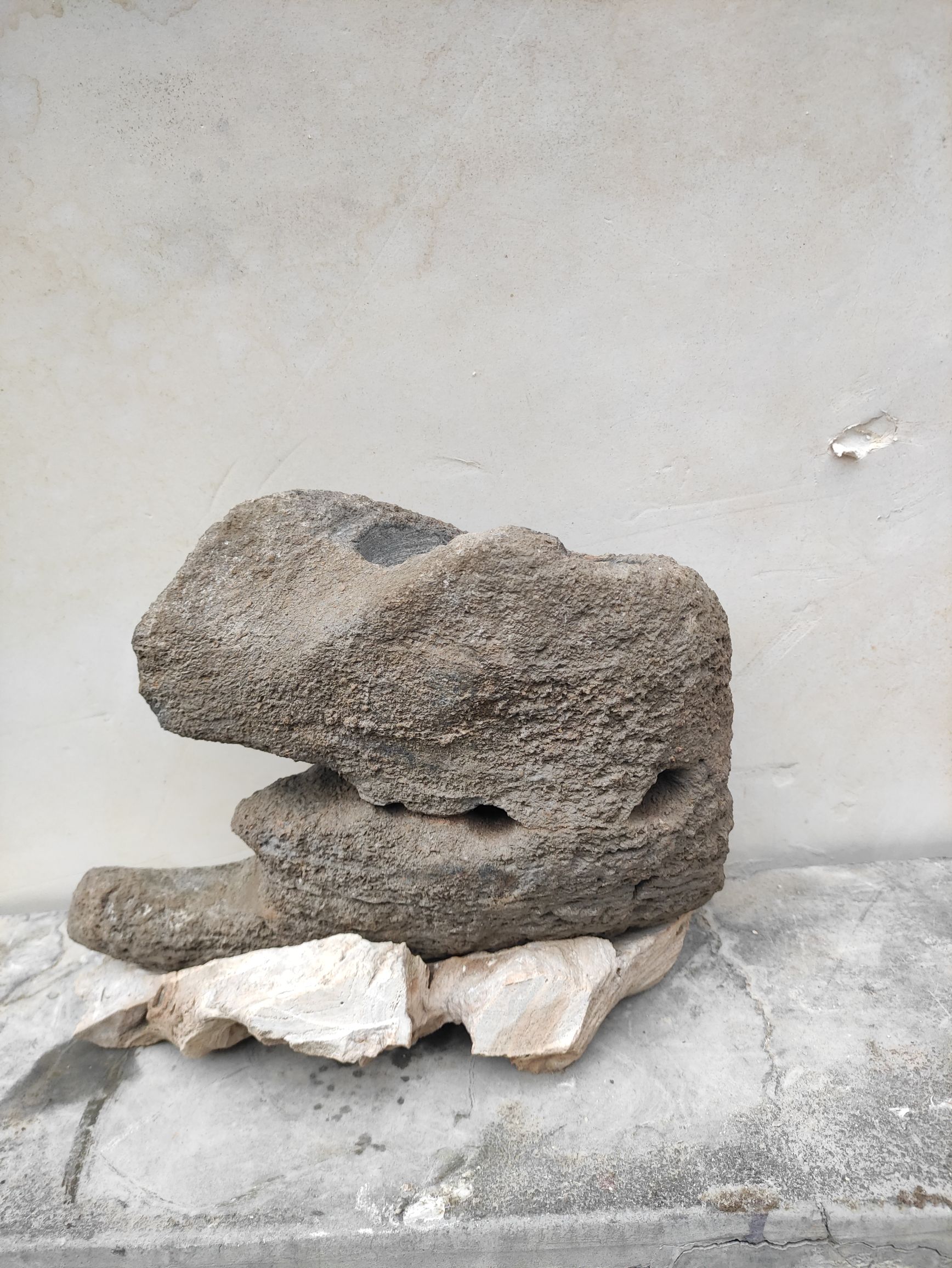 这方象一只靴子的石头,也是一个石头花盆,有个很好的寓意《脚踏实地》,下面的垫石是流纹岩(岩浆喷发形成),亦有观赏性。