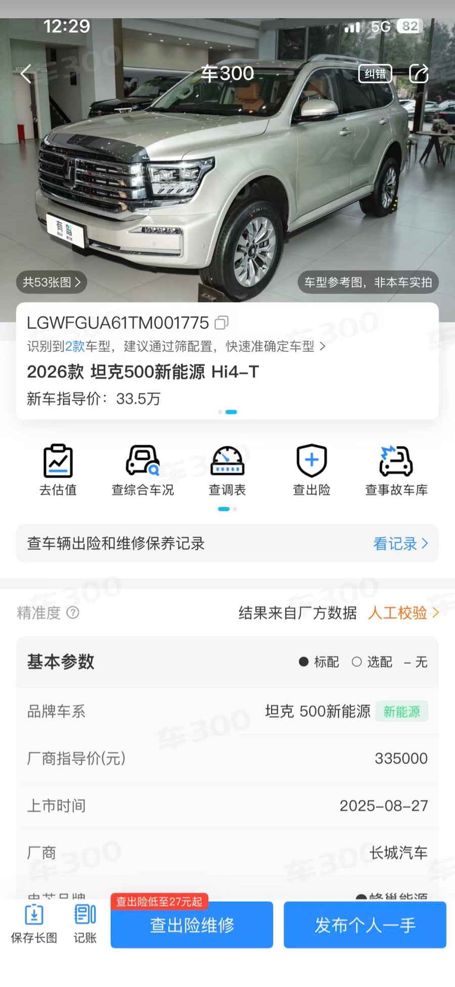 26款新坦克500、110续电插混,26年出厂今天刚上牌、指导价33.58、带膜带套大新车