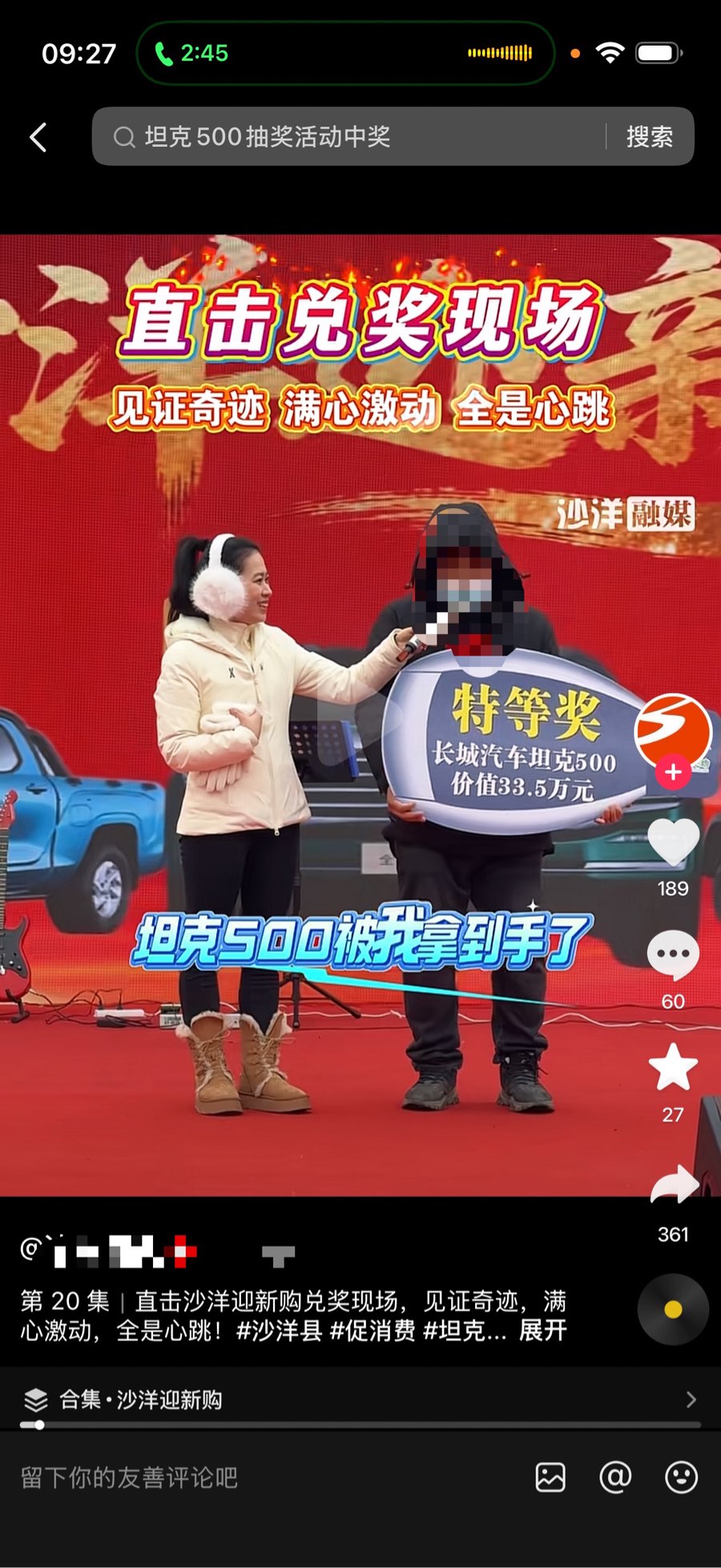 又是一台中奖车,全新坦克500,中奖不要,变现处理