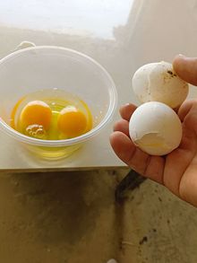 :我那个是受精蛋看见没,鸡场的多啦不敢上蛋受精,受精蛋不能久放。但是作为吃,受精蛋好于无精蛋。