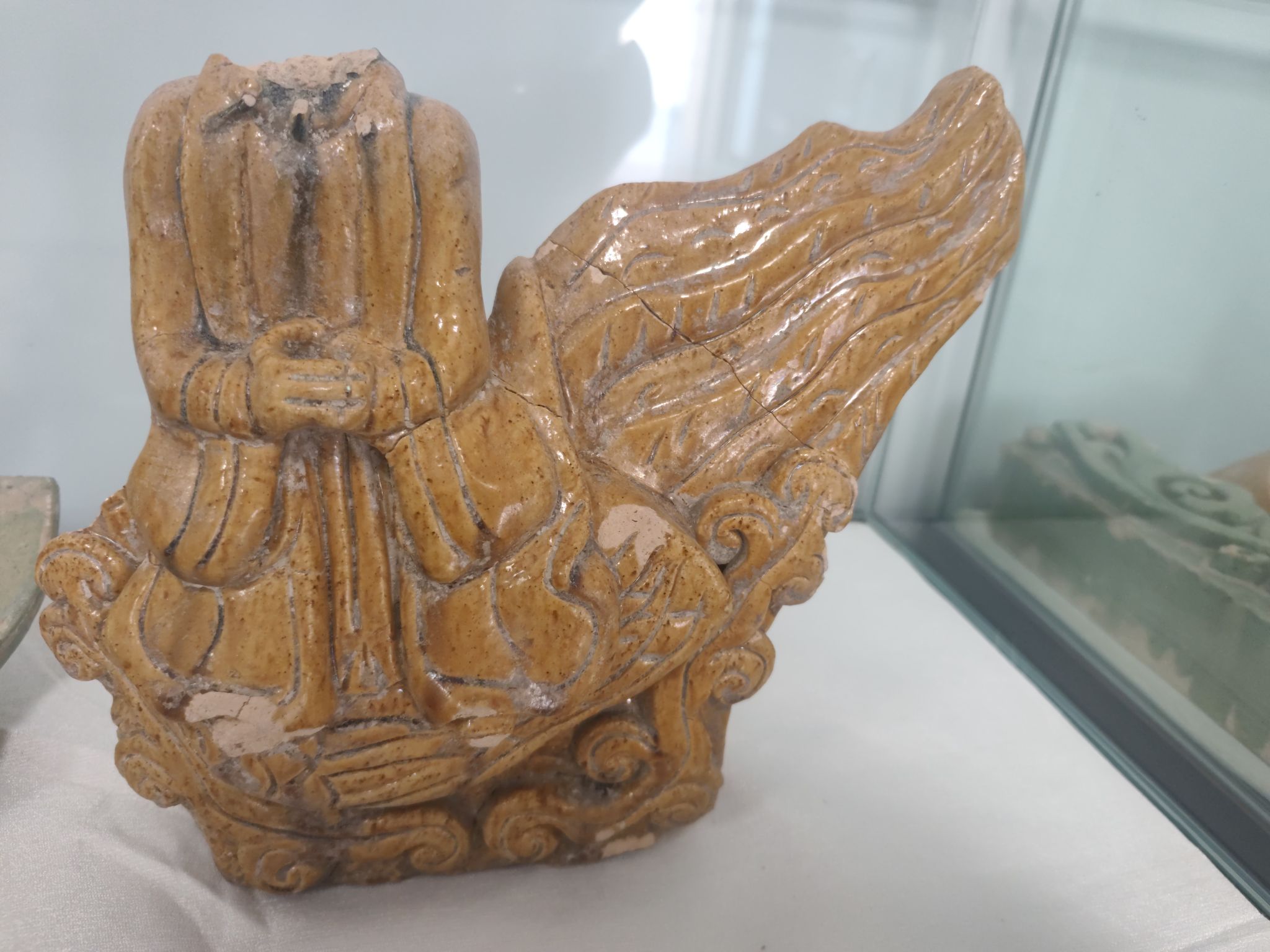龙山报恩寺仙人骑凤黄琉璃构件。胎质是白色的,是当时当涂窑生产供应的。这个构件与明显陵的是一样的。