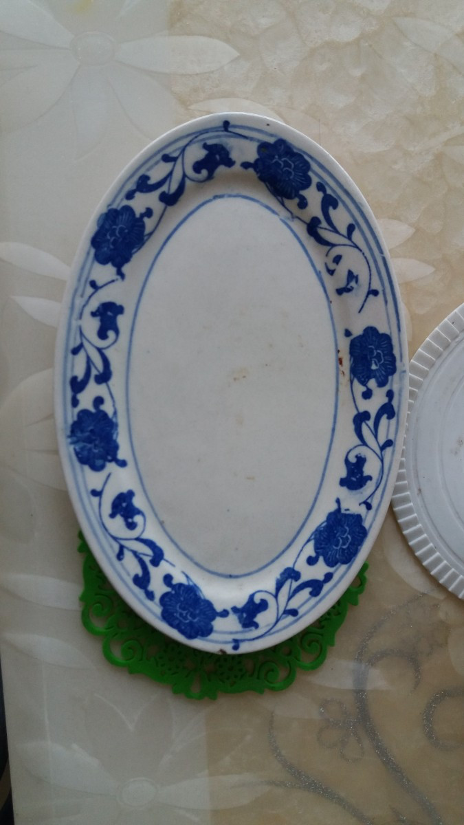 隋朝时期的白底青花瓷盘。