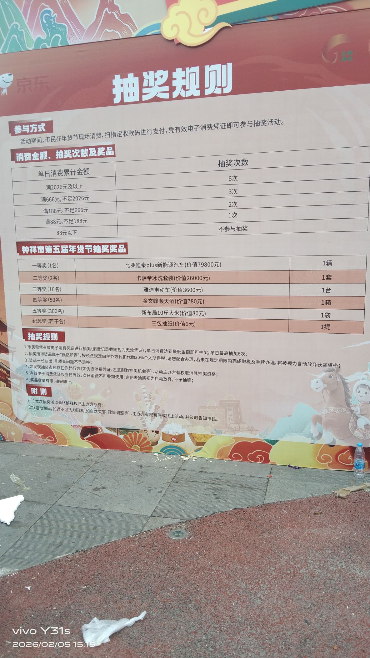下午逛年货节,买了90元的商品,获得一次抽奖机会,火气还不算太差,抽中了一个五等奖(5公斤大米一袋)。