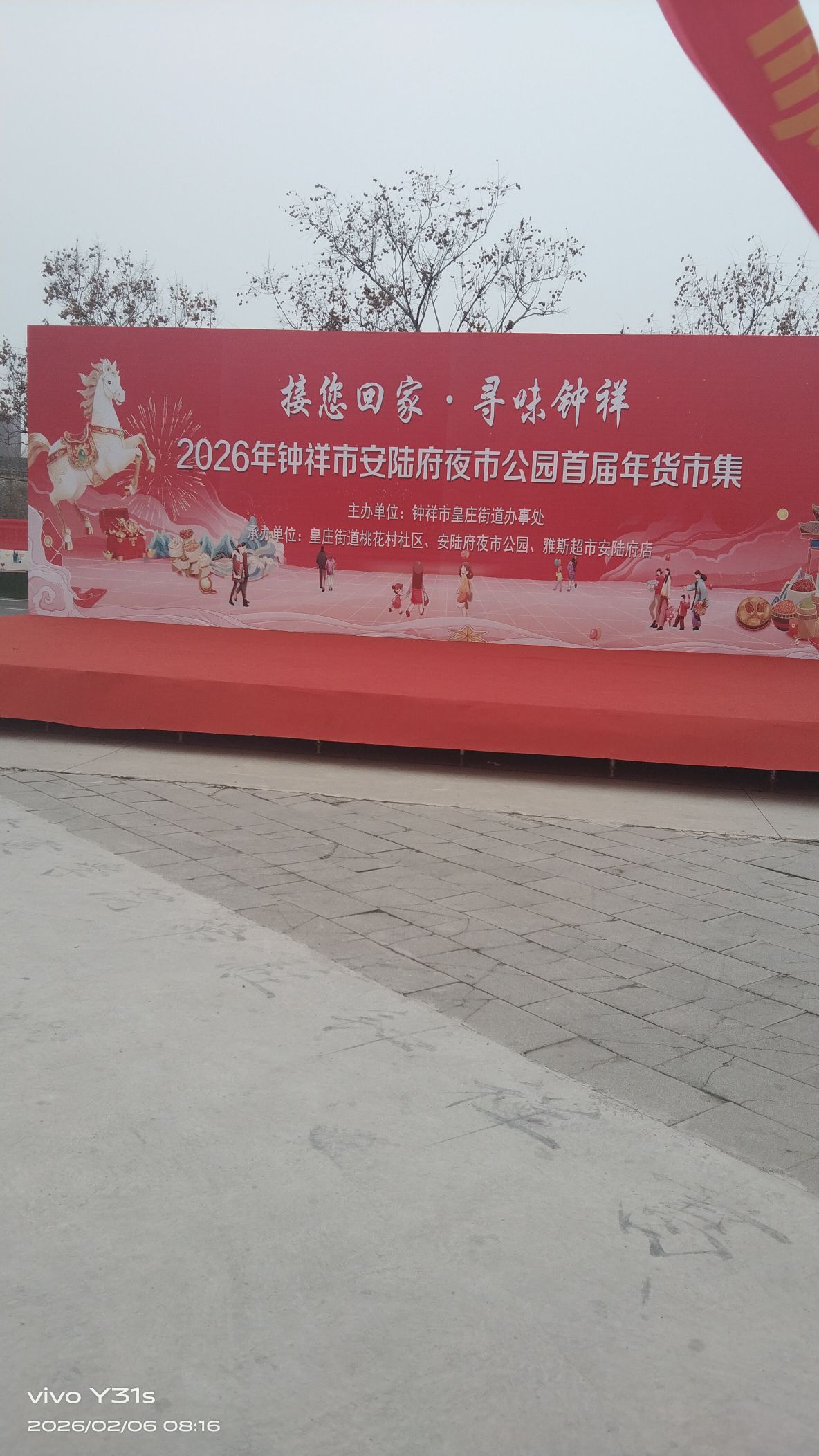 2026年钟祥市安陆府夜市公园首届年货市集今日开启,主办单位:钟祥市皇庄街道办事处。时间:2月6日至2月8日。地点:安陆府东路,皇城一号小区对面,(新雅斯处)。