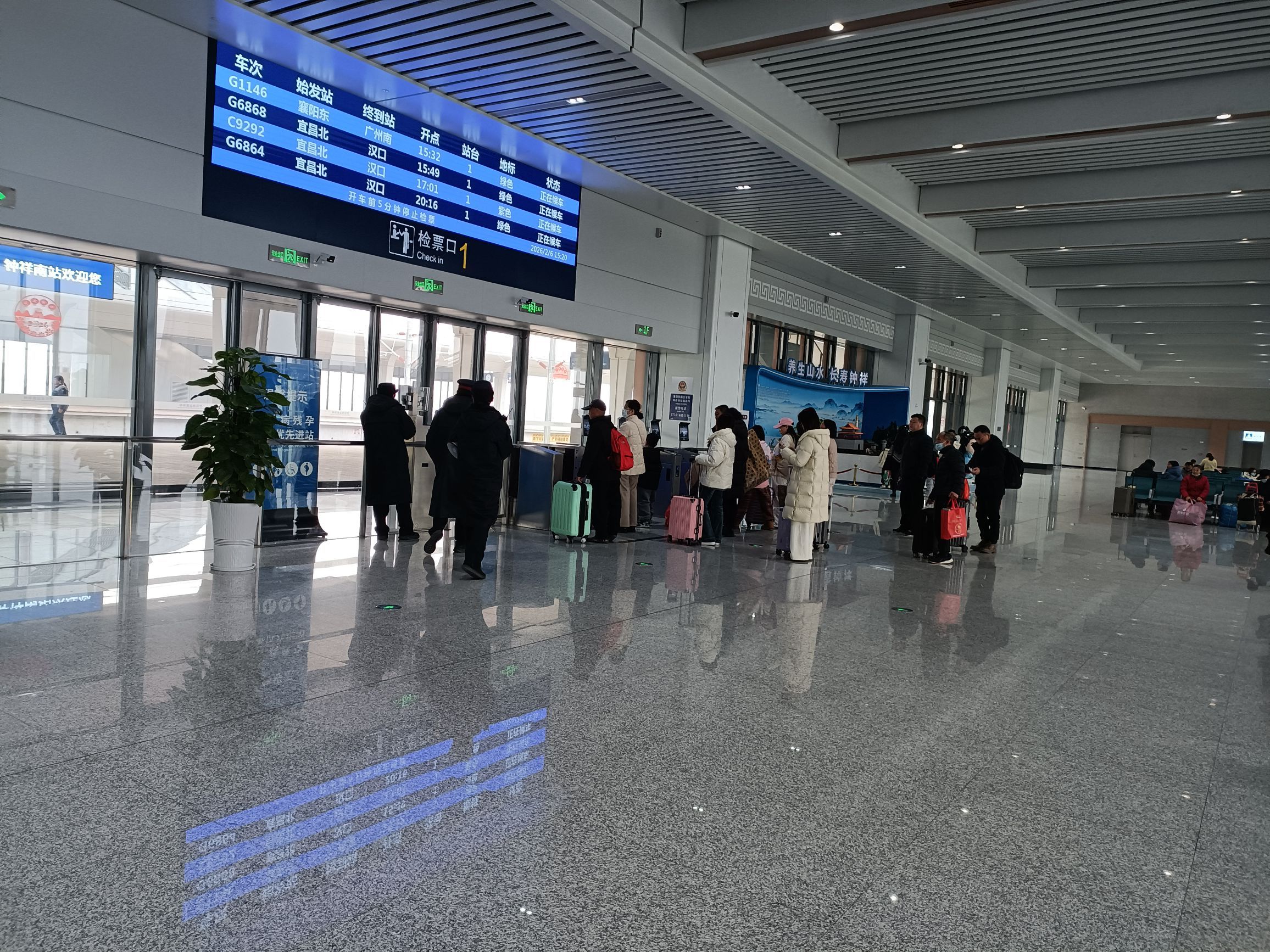 钟祥高铁专线2026年2月6日下午二点半新车站至高铁站36分,高铁坐位12车11D/过道(F/车窗),宜昌北至广州高铁钟祥站15点32分开,到天门站15点50分、停3分,到汉口站16点30分、停车10分。到武汉站17点01、停车10分,到咸宁北17点35分停3分。到岳阳东18点08分停3分,到长沙南站18点45分。