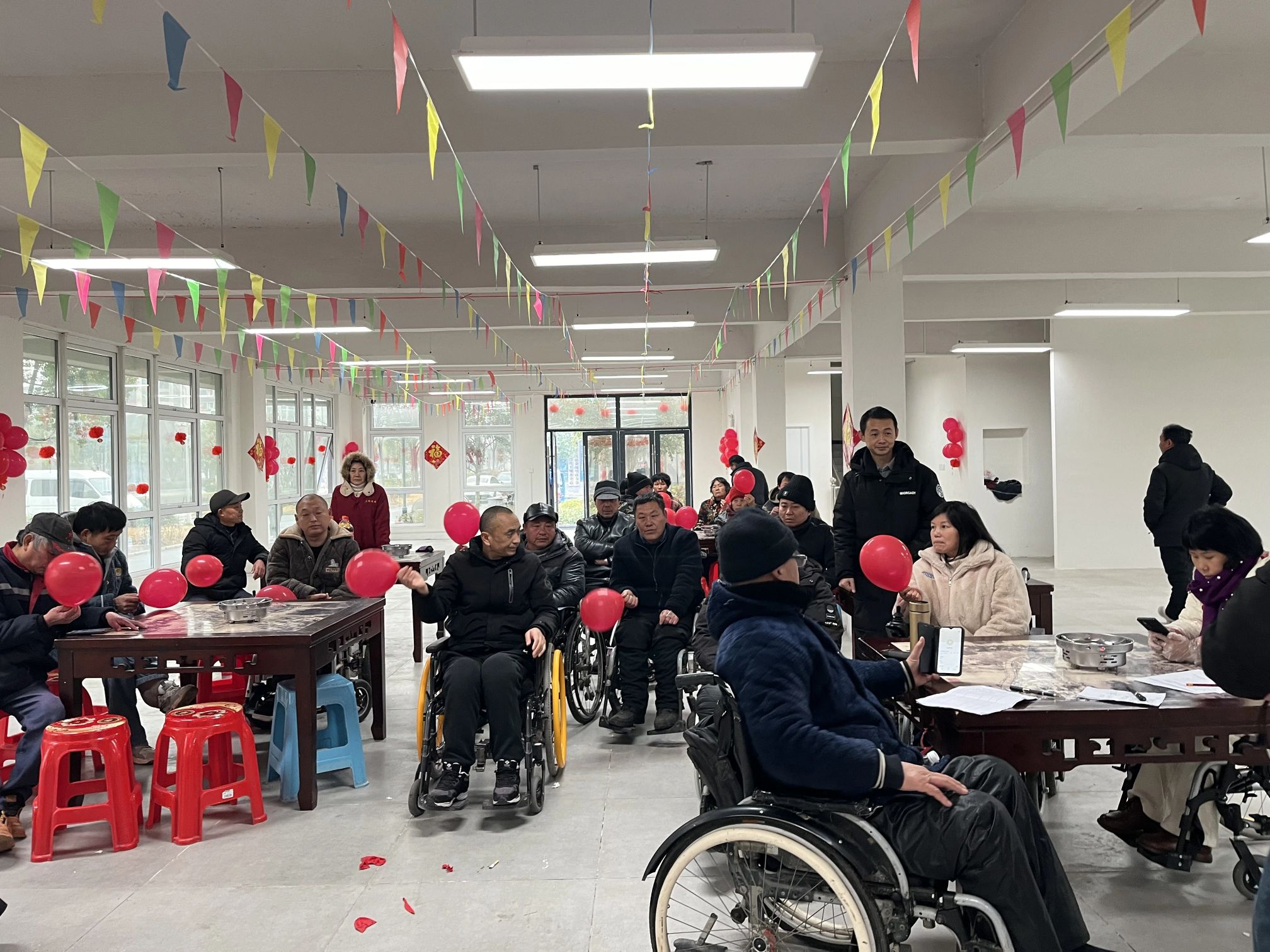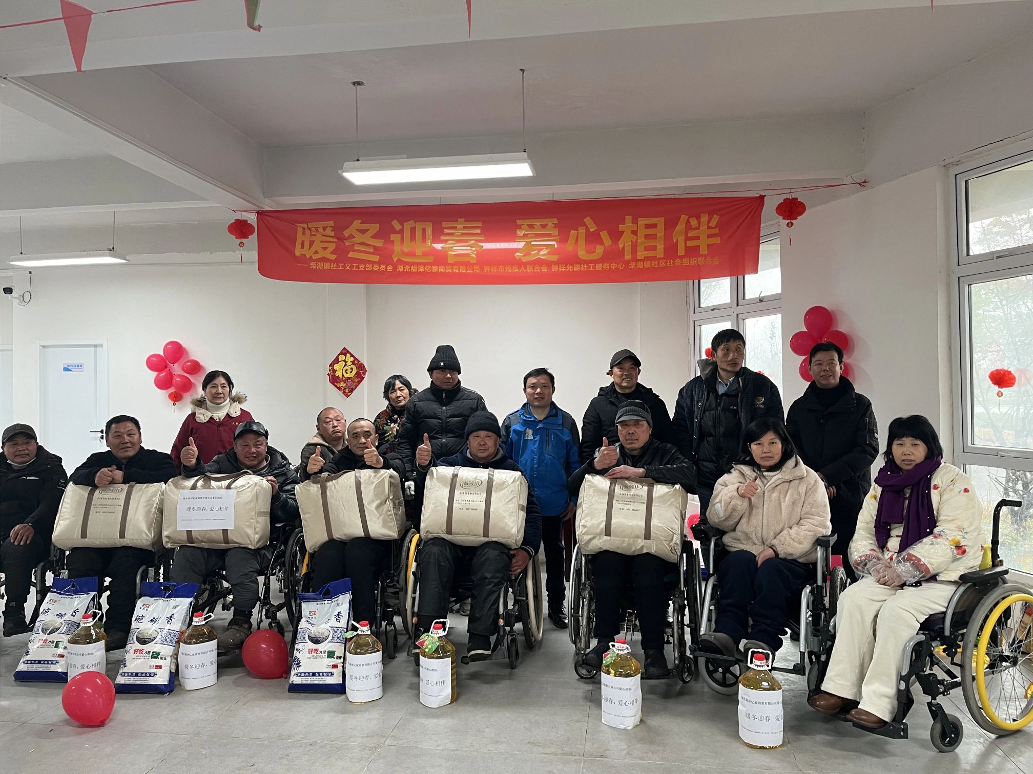 岁末临春,年味愈浓,在新春佳节即将到来之际,柴湖镇社工义工党支部携手湖北福泽亿家商贸有限公司,于2026年2月9日在新城基地食堂开展“暖冬迎春,爱心相伴”春节暖心行动,与“楚天舒”阳光家园的残疾朋友们相聚一堂,共迎新春,共享温情。