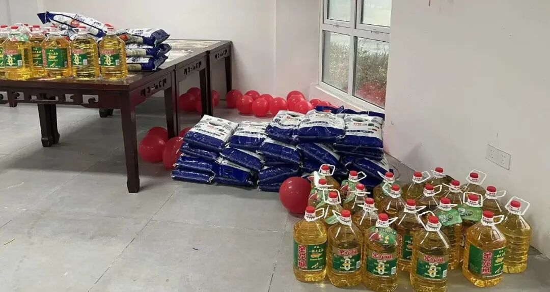 湖北福泽亿家商贸有限公司作为本次活动的爱心企业,赞助了活动所需的米、油、冬被生活物资,用实际行动为残疾朋友们送上了新春的切实关怀。本次活动邀请了阳光家园30名残疾朋友及陪同人员参与,大柴湖经济开发区社会事务办副主任孙峰、柴湖镇残联理事长黄力、湖北福泽亿家商贸有限公司董事长时丰敏、总经理郑伟、洪扬以及柴湖镇社工义工党支部全体党员、入党积极分子、大柴湖义工理事和专职工作人员共同到场,以陪伴与互助的方式,为残疾朋友们送上新春的美好祝福。活动前期,工作人员提前完成了各项筹备工作:精心采购生活物资,按需求筹备餐食,布置带有新春氛围的活动场地;细致检查食堂出入口、通道、卫生间等区域,确保无障碍通行;同时明确接待、物资、后勤、宣传各小组分工,为活动顺利开展做好充分准备。