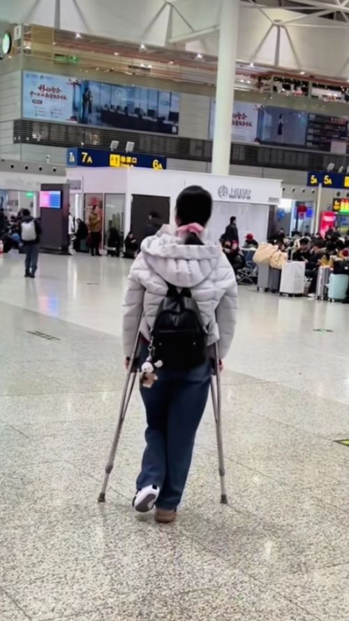 钟祥文集美女在上海搞房产销售,没想到临近放假把脚崴了,原准备放弃回家,可又思乡和思亲心切,最终还是带着拐杖回来了。祝她早日康复!祝她春节愉快,新年走好运发大财,万事如意!(图片来自她发网上的抖音视频)