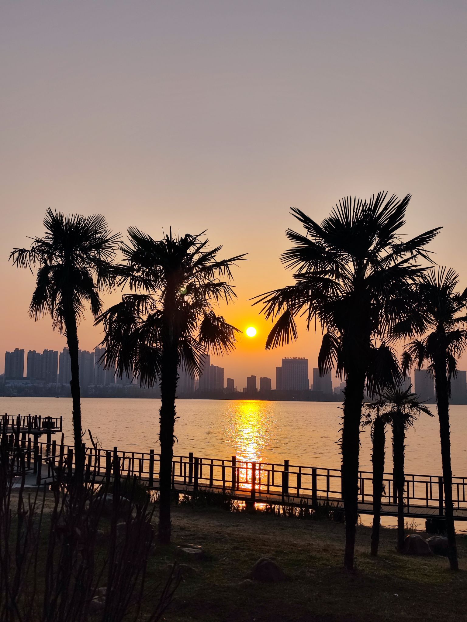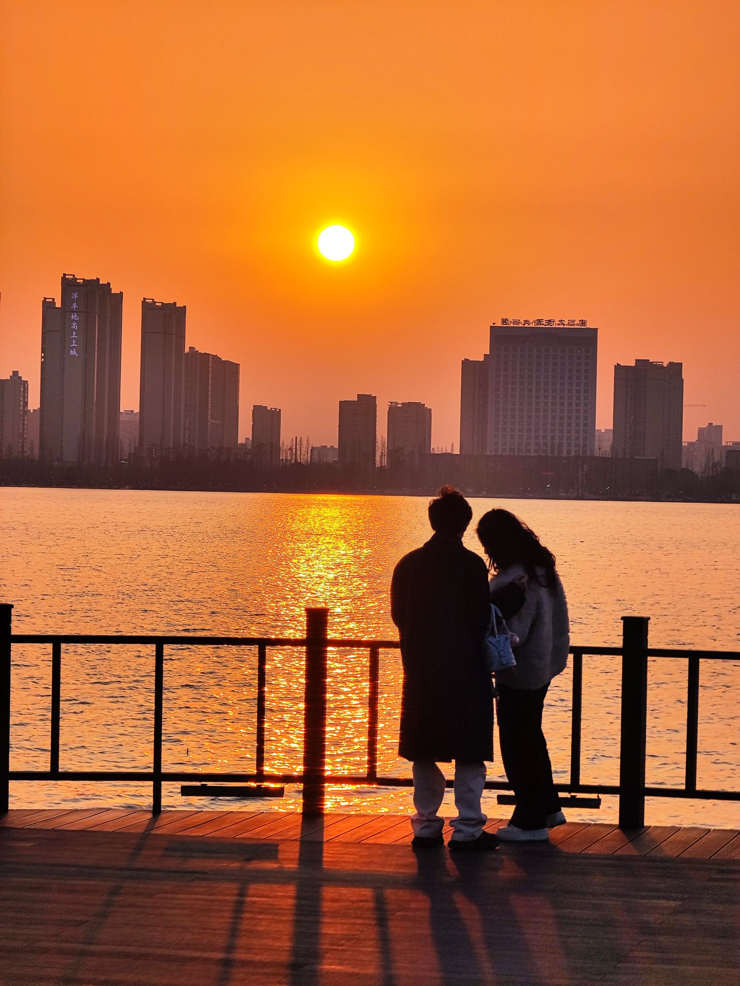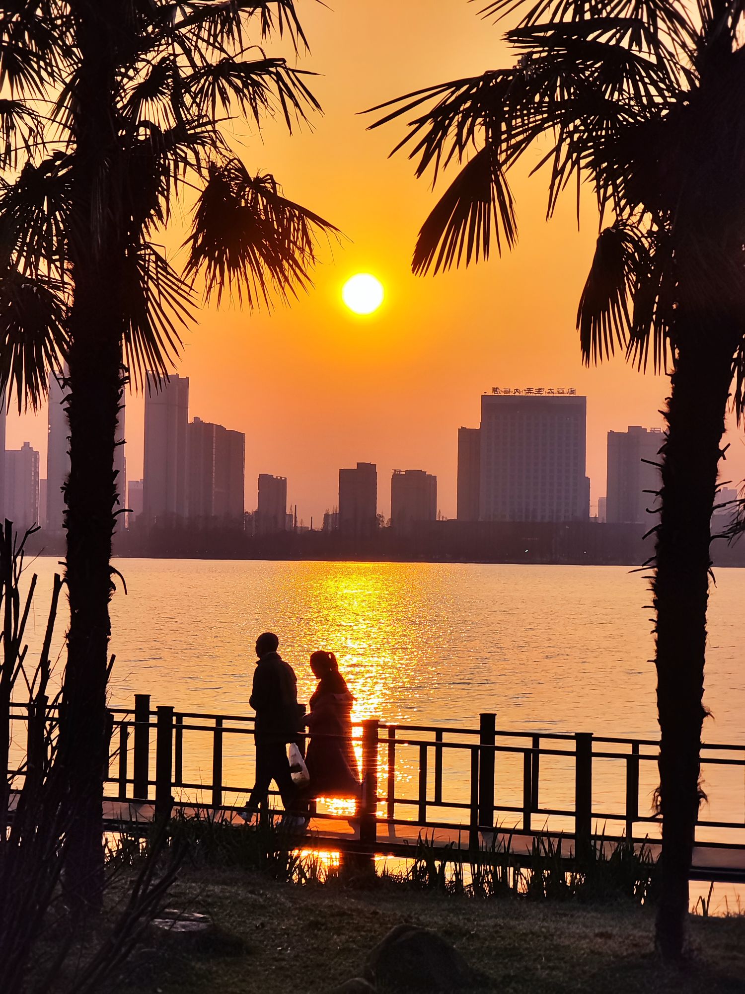 莫愁湖边的夕阳下