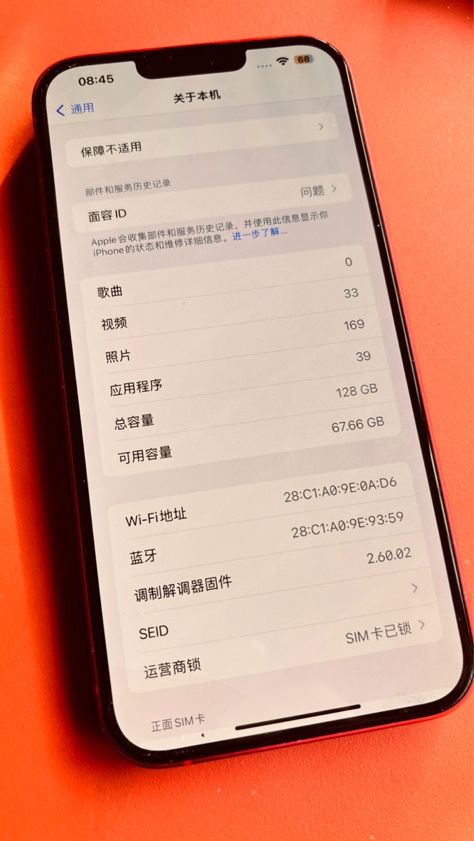 全原装苹果14pls128美版有锁卡贴机红色98新1808甩卖