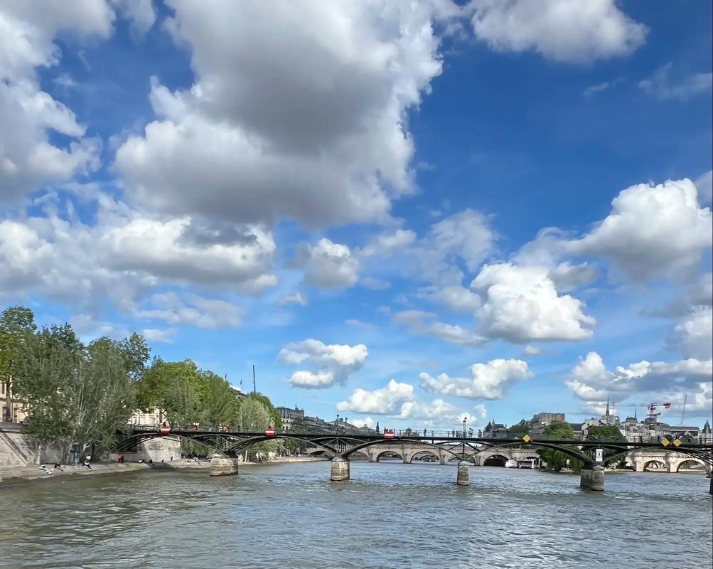 我们登上了塞纳河的游船,随着船身缓缓开动,巴黎的精华画卷在眼前徐徐展开。船头破开河水,浪花一路相伴,两岸的古老建筑依次映入眼帘:庄严巍峨的巴黎圣母院,在阳光下散发着厚重的历史气息;精致典雅的卢浮宫,藏着数不尽的艺术瑰宝;高耸的埃菲尔铁塔遥遥相望,钢铁的浪漫在河畔静静矗立;还有一座座风格各异的古桥,石拱横跨河面,桥上的雕刻精致细腻,仿佛在诉说着百年的故事。