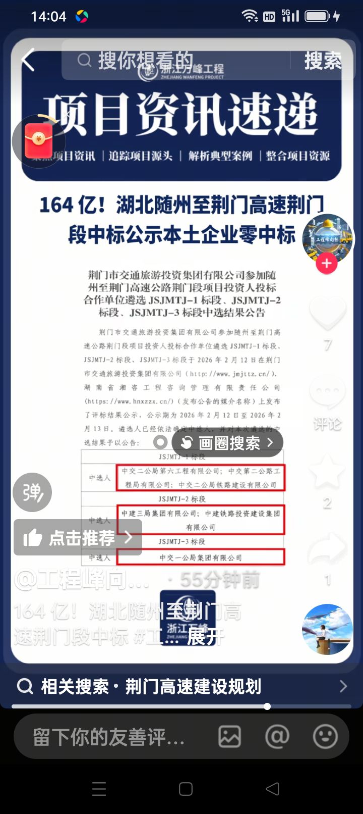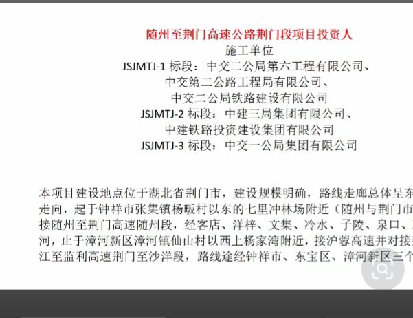 随荆高速荆门段的施工单位出来了!