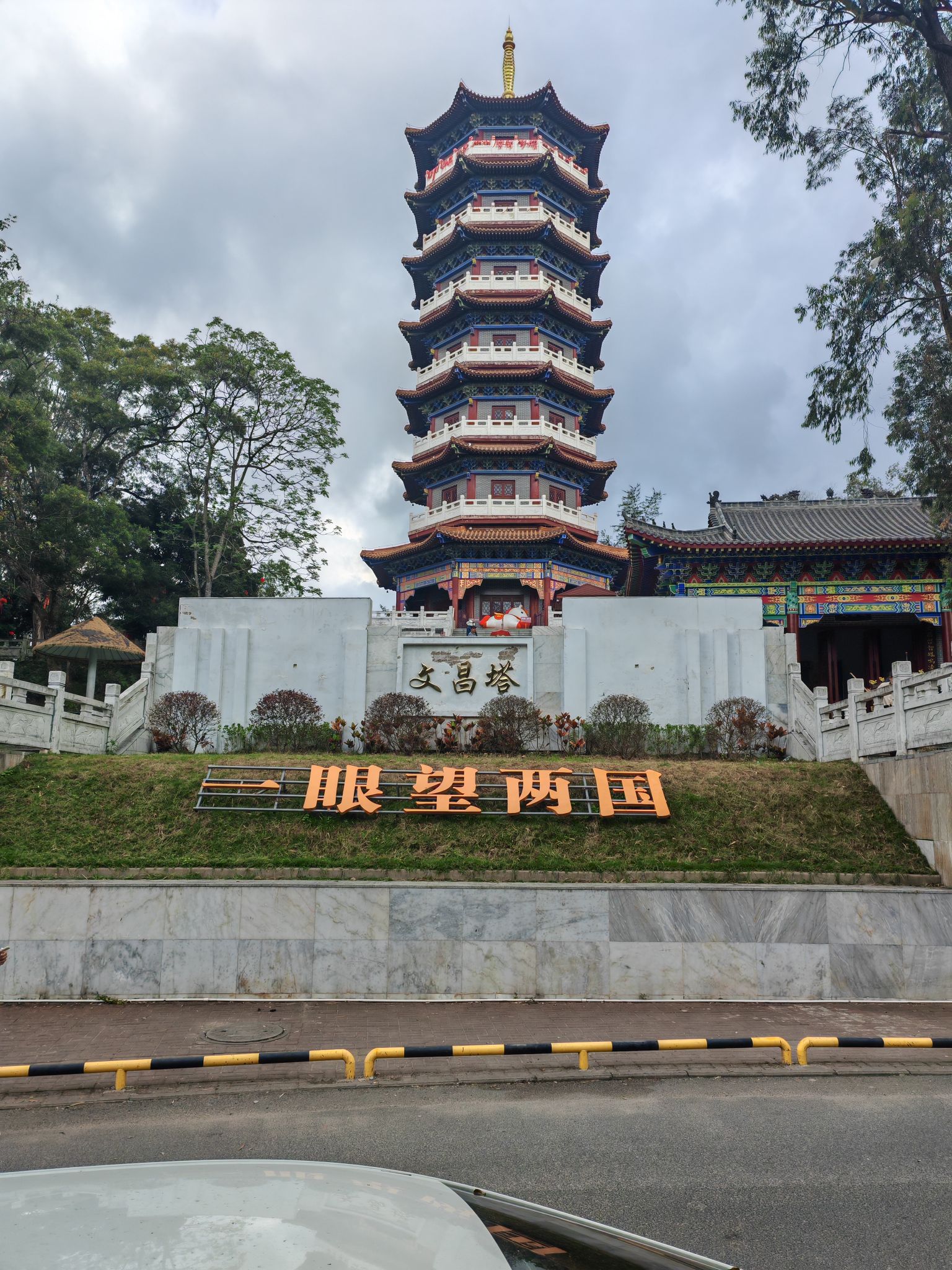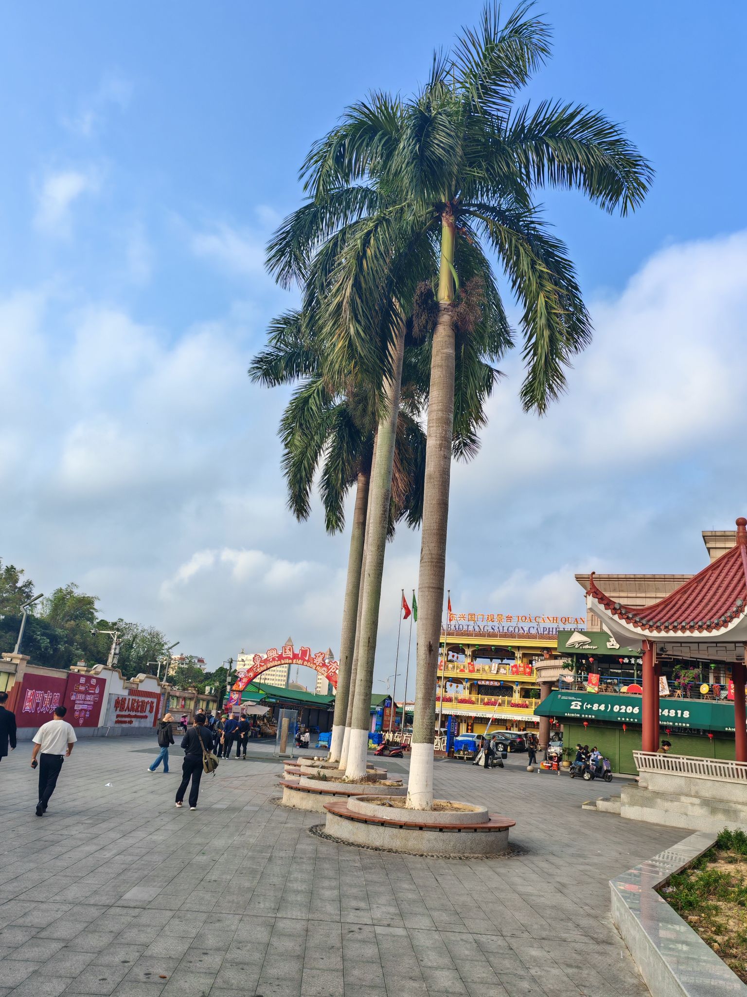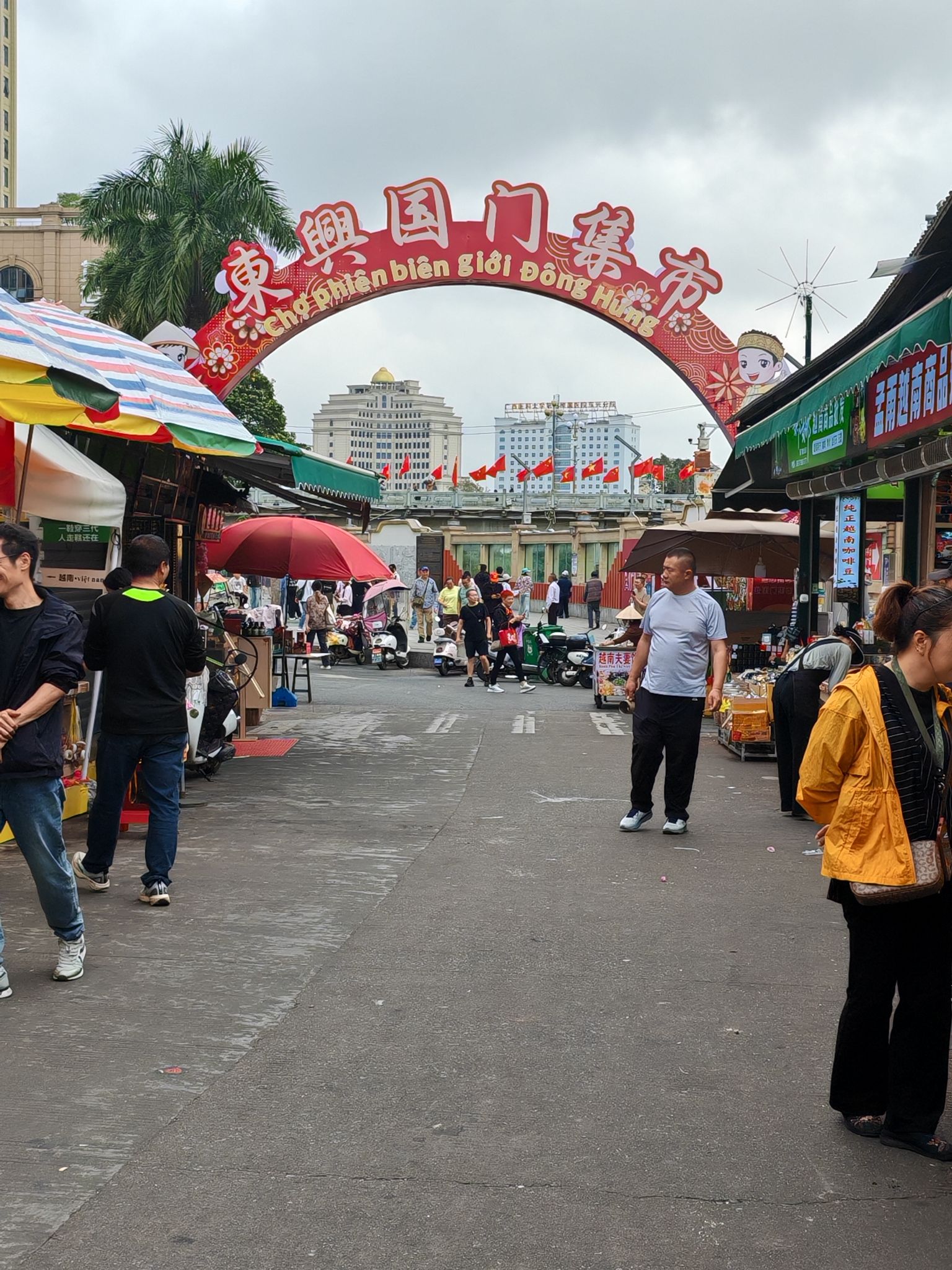 《东兴中越边境吟》东兴界上两邦连,越韵华风共一街。塔耸文昌昭日月,眸凝两国辨江淮。通关人潮逐浪涌,夹道繁花映面佳。满目琳琅皆是趣,边声里巷自和谐。