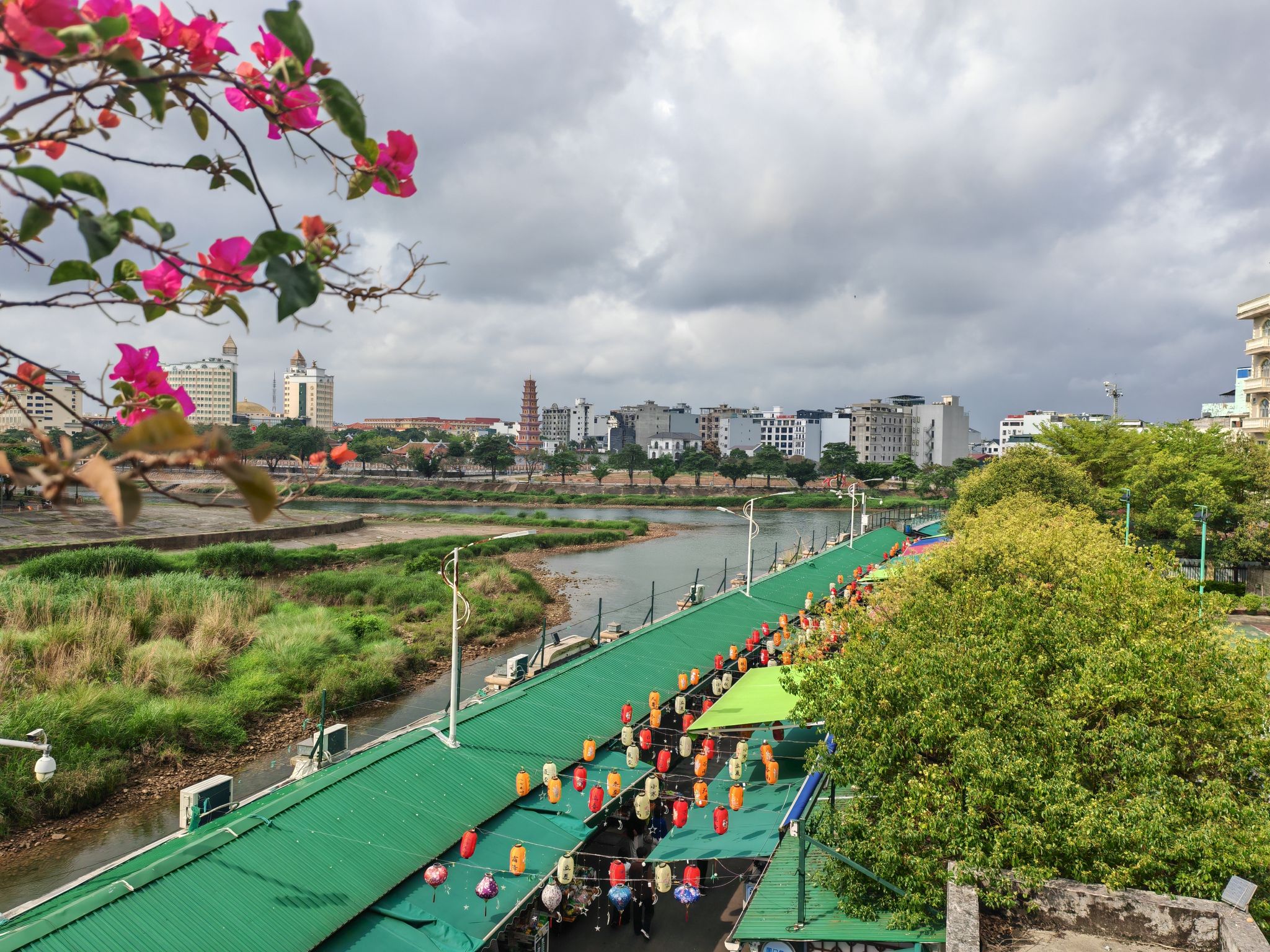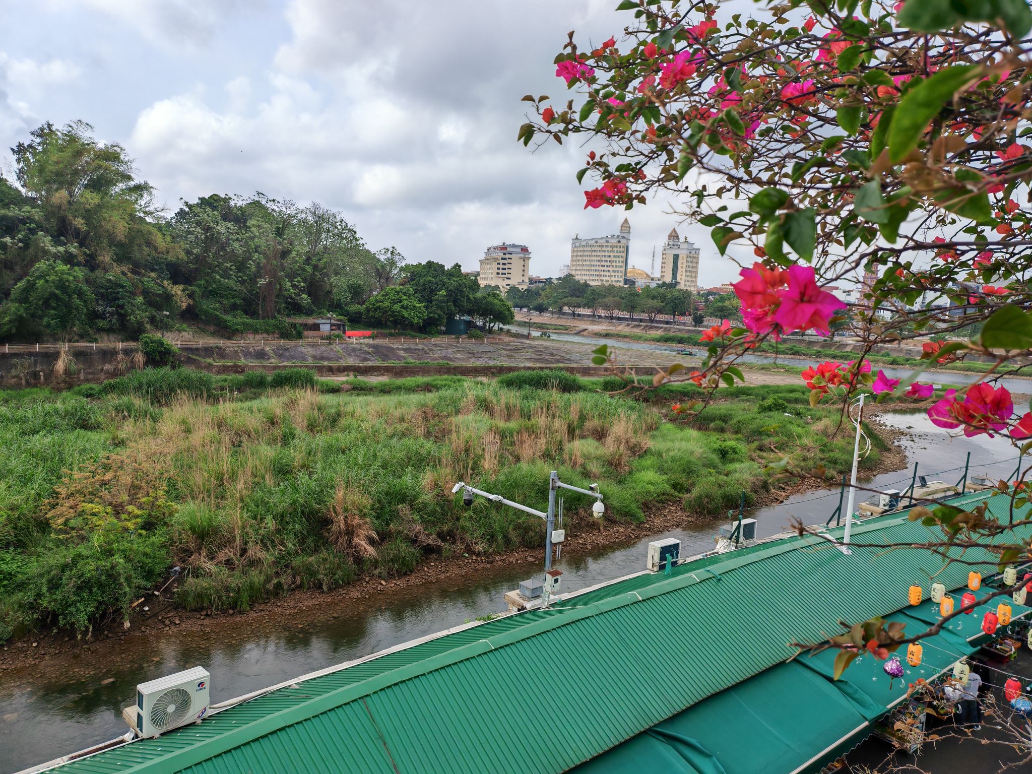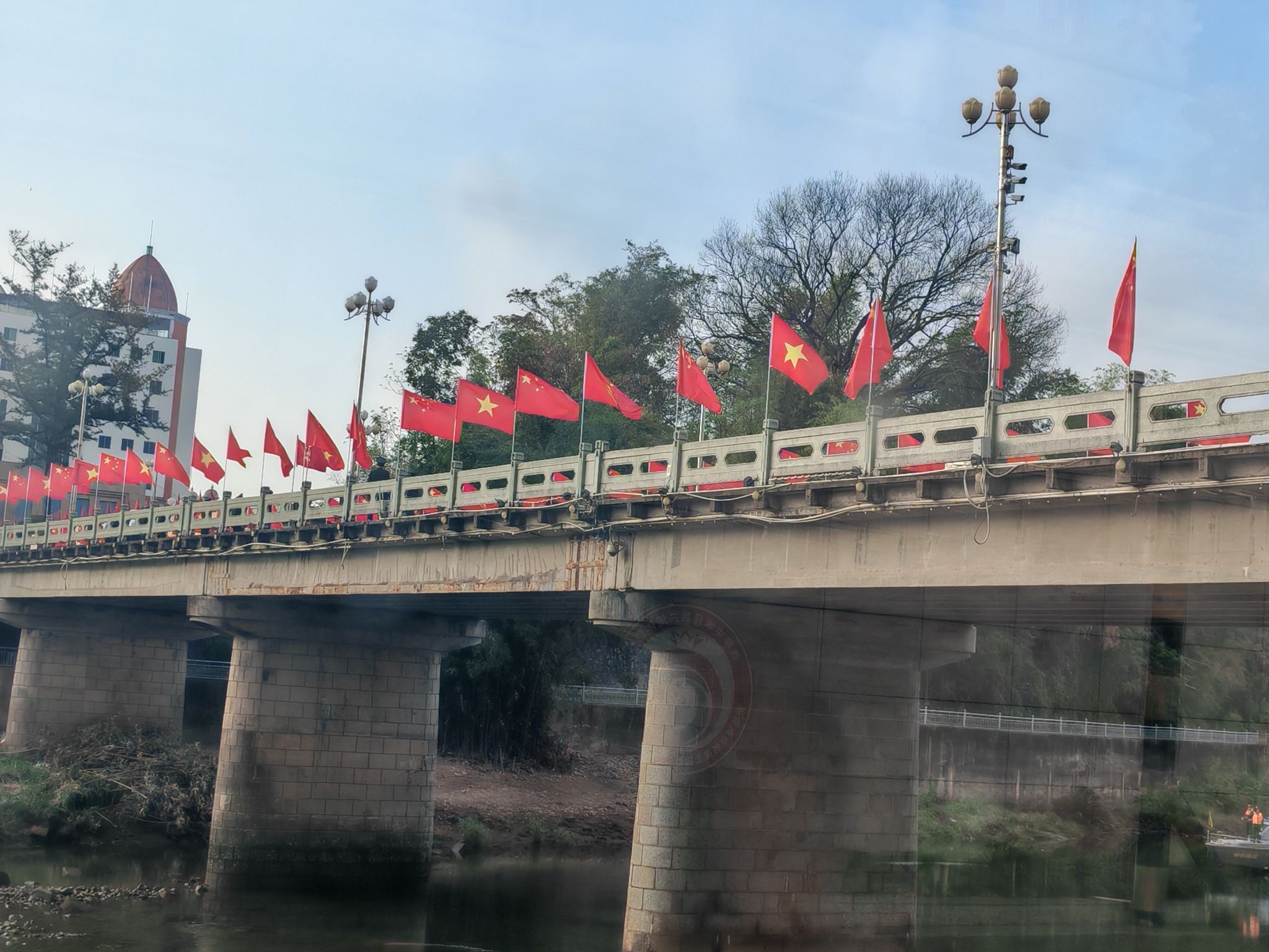 《东兴中越边境吟》东兴界上两邦连,越韵华风共一街。塔耸文昌昭日月,眸凝两国辨江淮。通关人潮逐浪涌,夹道繁花映面佳。满目琳琅皆是趣,边声里巷自和谐。
