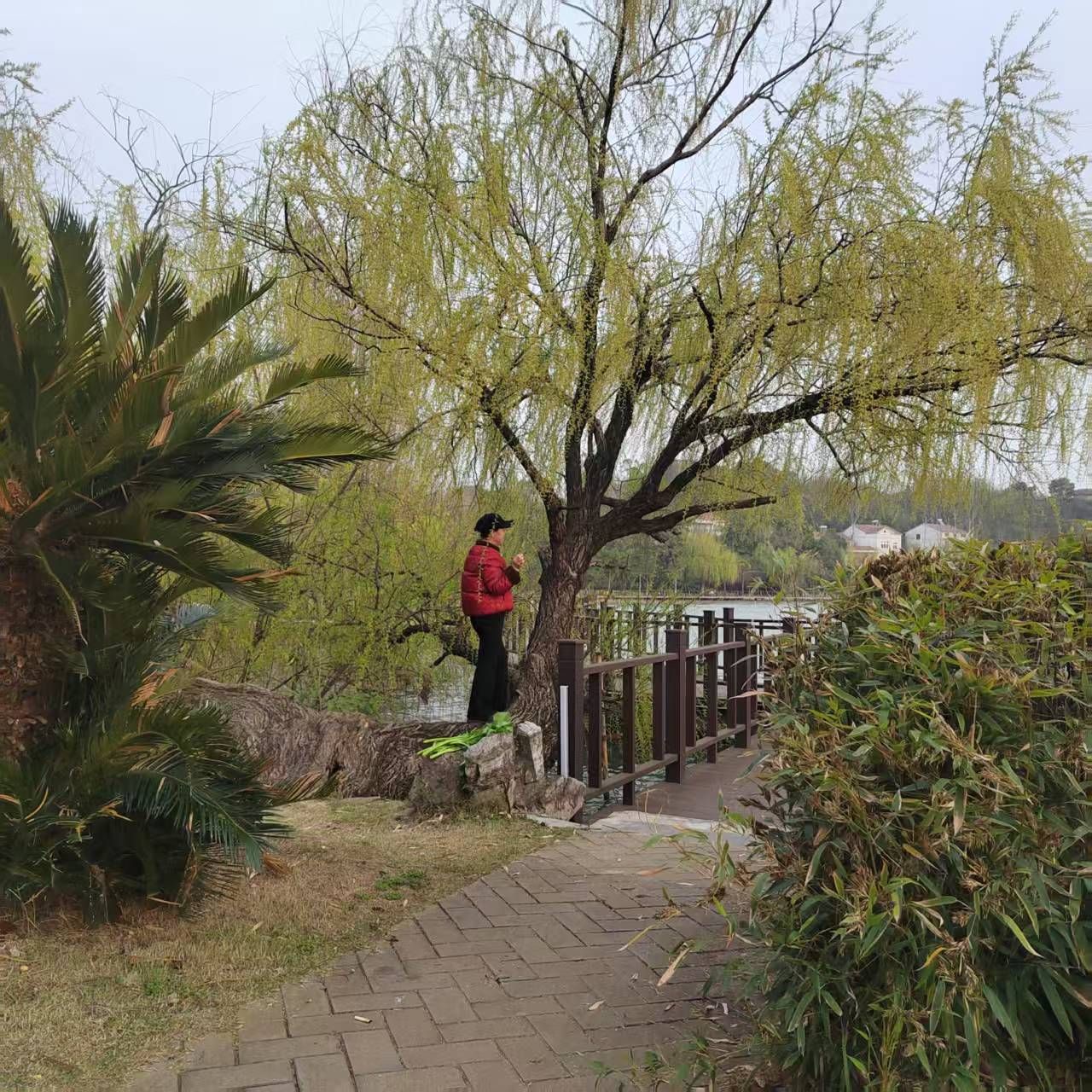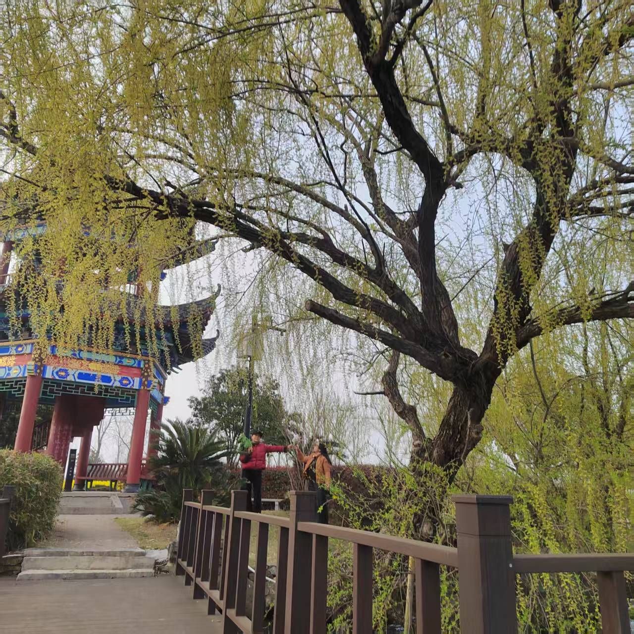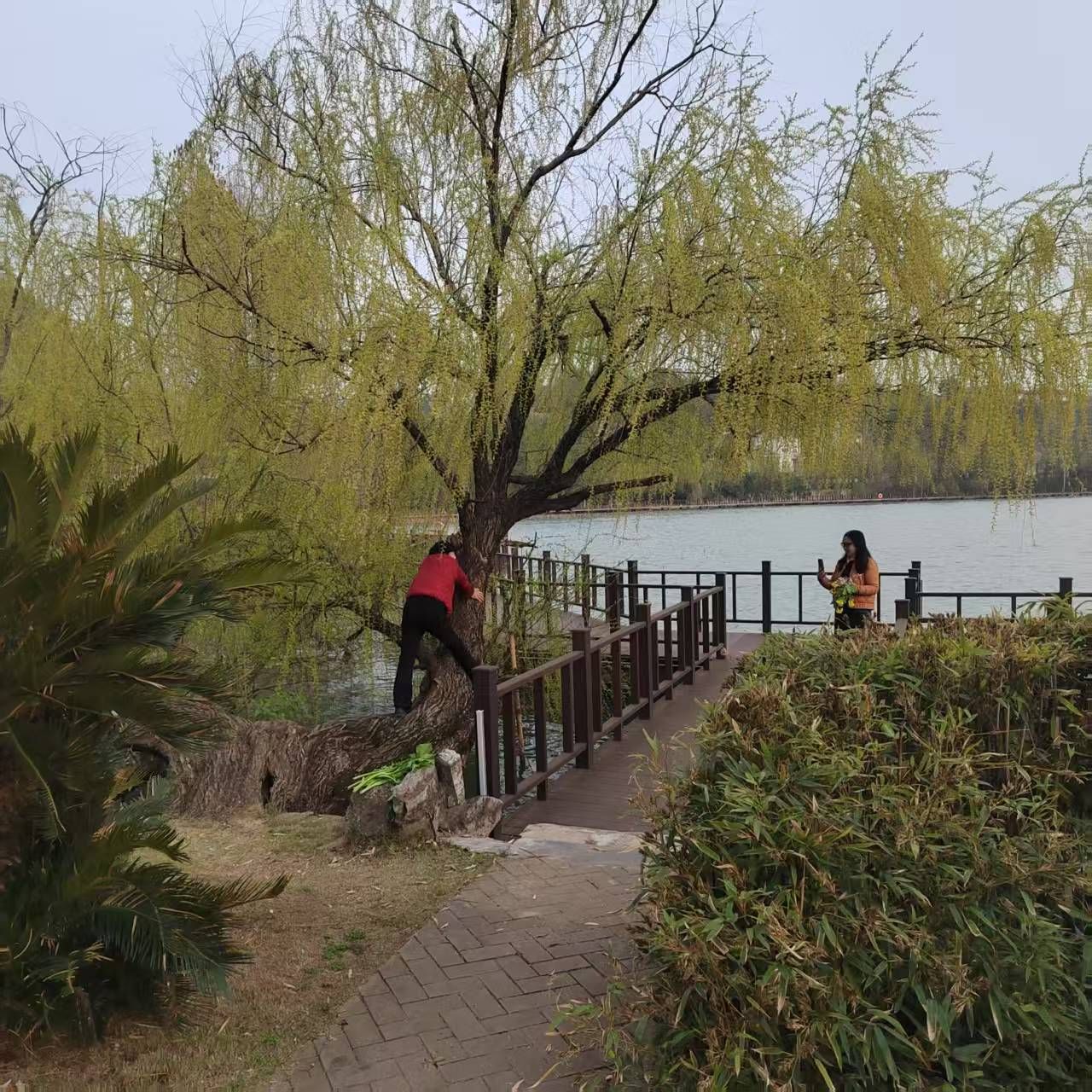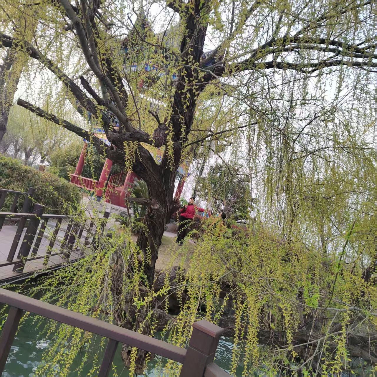 漫步北湖公园,柳丝垂落,新芽初绽,嫩的透亮,风一吹便轻轻摇曵满是生机与意