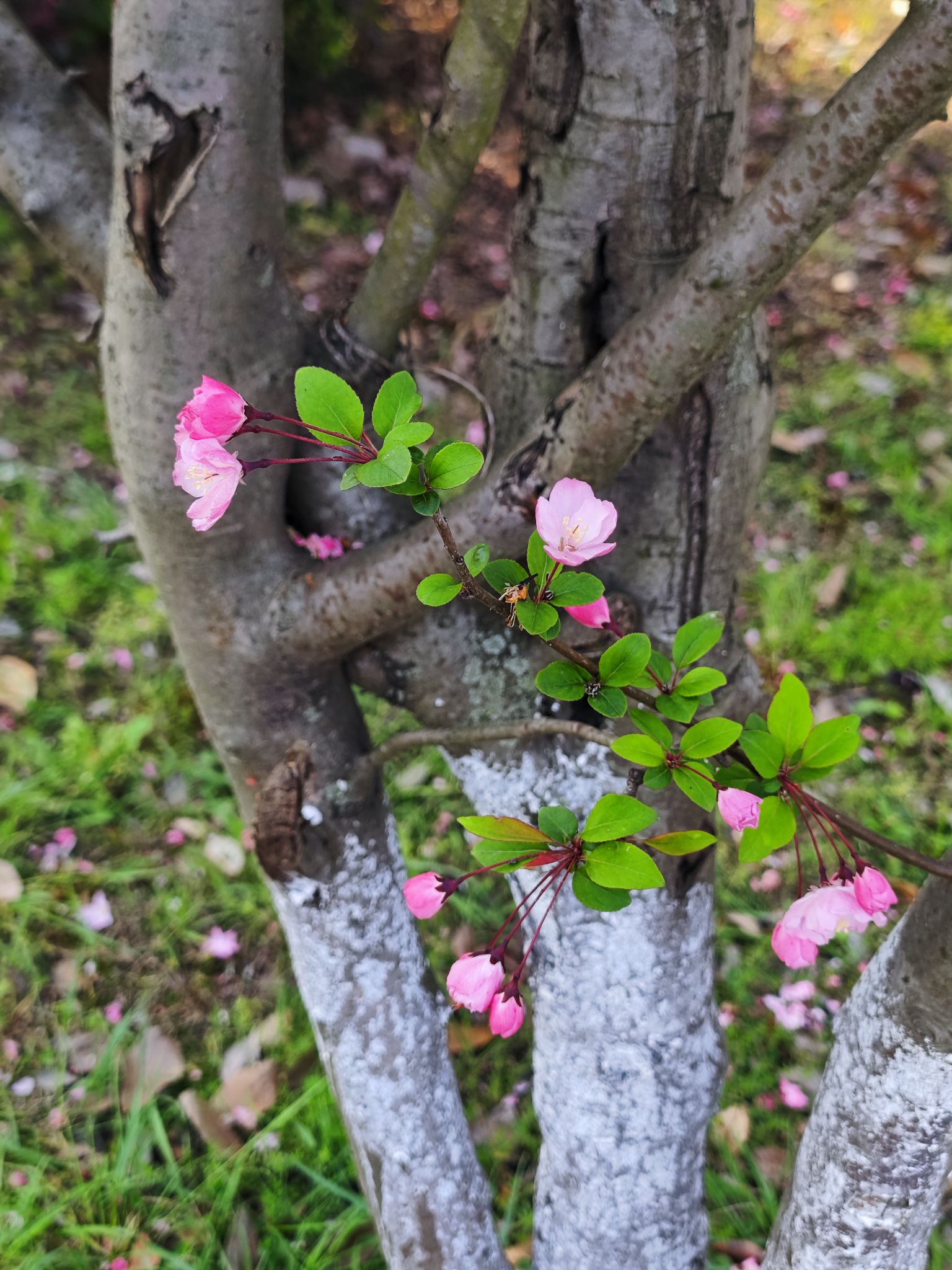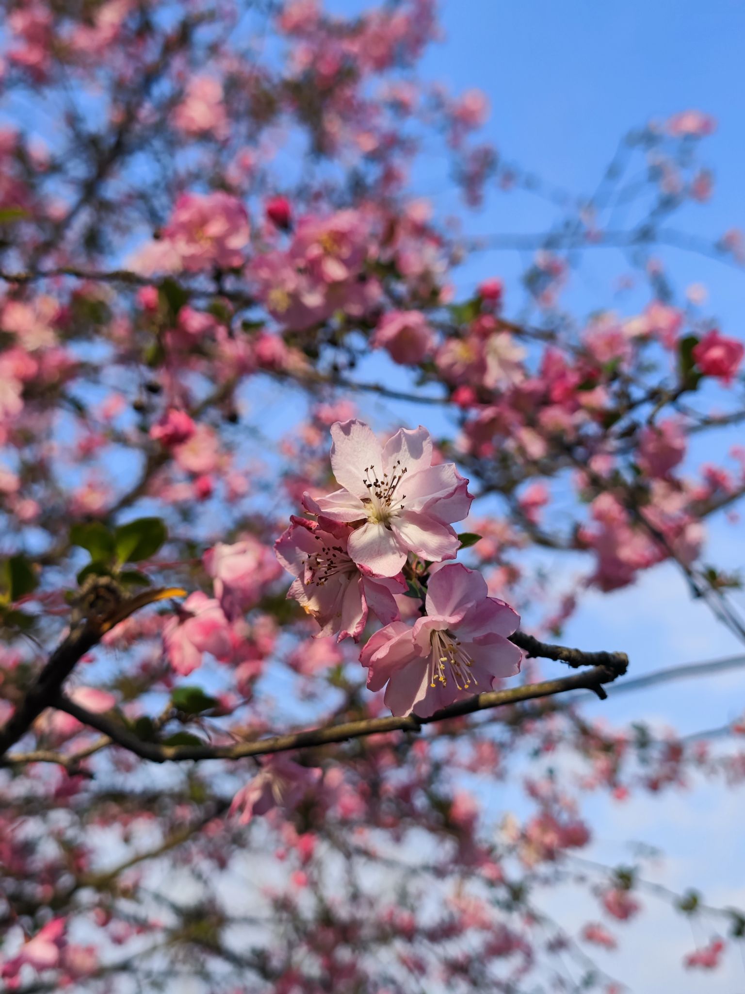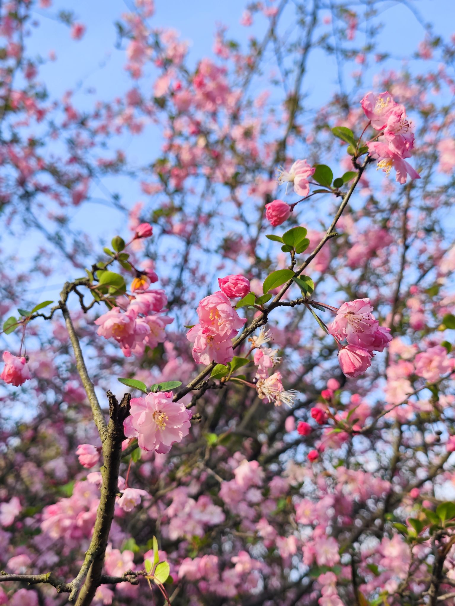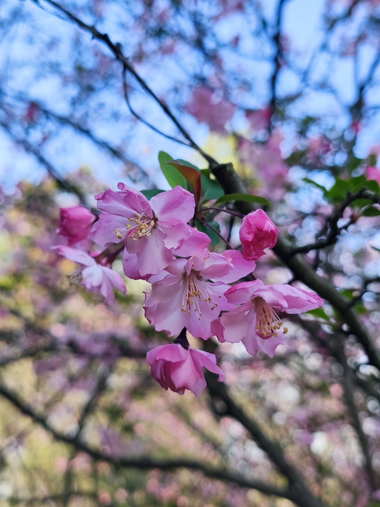 海棠花比樱花浓郁,比桃花雅致。独木不成林,一花一世界