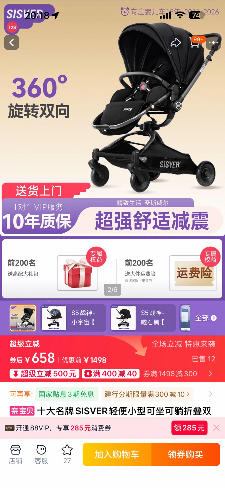 SISVER圣斯威尔四轮万向PRO婴儿推车,双向可坐可躺,小宇宙星空款,原价六百多,成色不错,功能正常,推起来顺滑,减震效果不错。万向推行,适合0-3岁宝宝,轻便可折叠,收纳方便。钟祥自提,80元13451165550