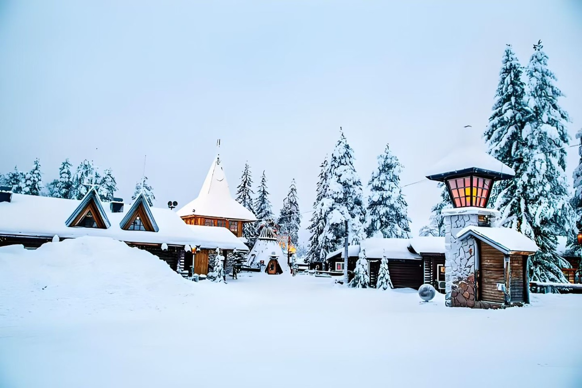 芬兰的冬日,本就是一片纯净到极致的冰雪世界。广袤的森林裹着厚厚的积雪,松枝被压弯了腰,积雪蓬松得像棉花糖,踩上去发出“咯吱咯吱”的轻响,是天地间唯一的声响。湖面结了厚厚的冰,冰面覆着皑皑白雪,平整得如同一块无瑕的白玉,延伸向远方,与灰蒙蒙的天际线相融,天地间只剩一片澄澈的白,清冷、静谧,仿佛时间都在此刻静止,连呼吸都忍不住放轻,生怕惊扰了这份独属于北极圈的安宁。
