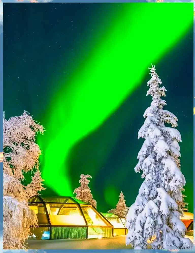 时至今日,每当闭上眼,仿佛还能感受到芬兰雪夜的清冽,还能看见天幕上那抹灵动的绿光。那是独属于北极的浪漫,是自然书写的史诗,这片绿光雪的世界,无关繁华,无关喧嚣,只用最纯粹的美好,让我永远铭记,念念不忘。