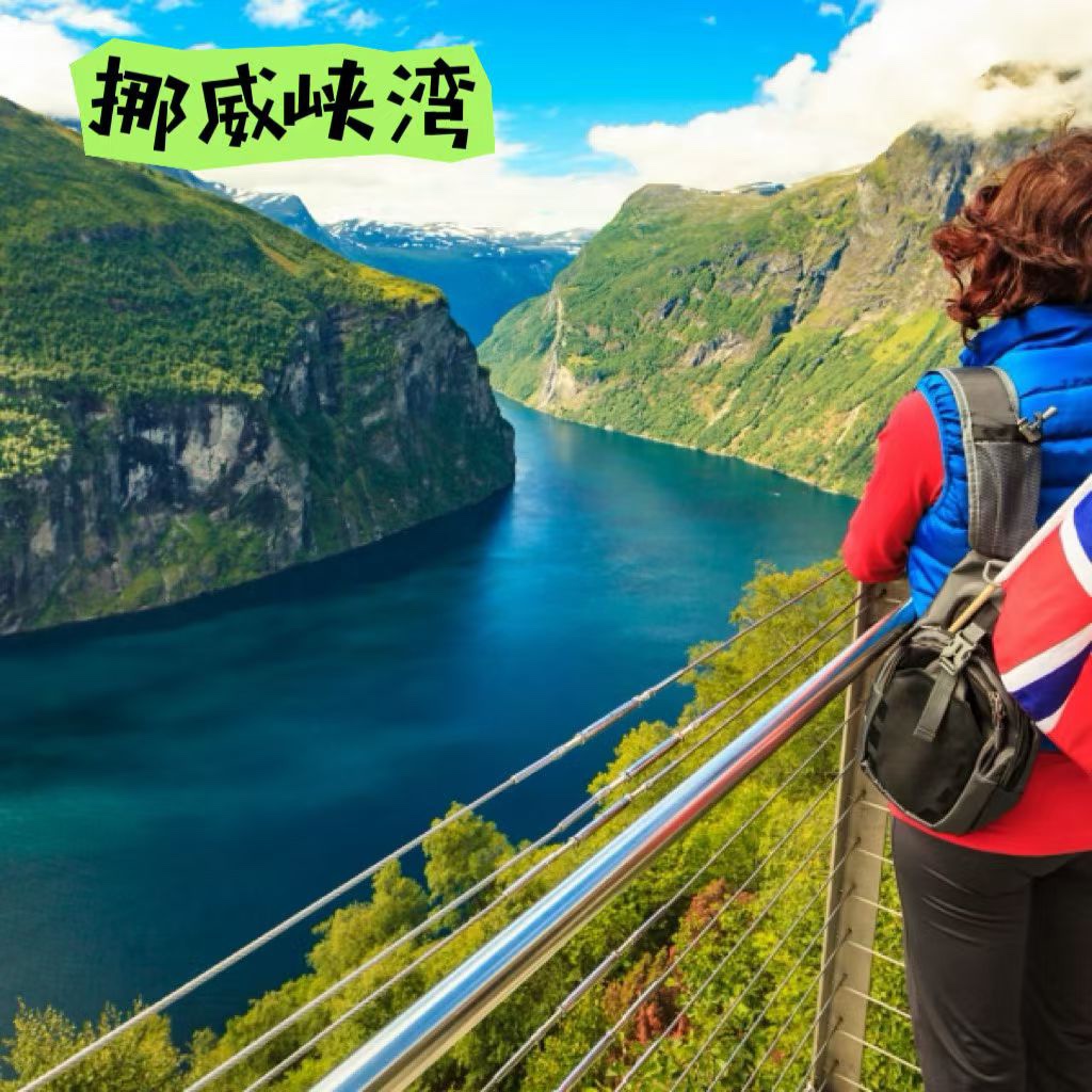 最难忘的是峡湾的模样,这是挪威刻在骨子里的浪漫,八月的峡湾,少了冬日的凛冽,多了几分温润。深蓝色的海水蜿蜒在群山之间,峭壁巍峨却不凌厉,山顶的积雪在夏末阳光里泛着柔和的白光,山间的草木郁郁葱葱,给冷峻的山峦添了一抹生机。瀑布从崖壁间倾泻而下,如银线垂落,水声潺潺,与海浪拍岸的声响交织,成了大自然最动听的旋律。站在岸边随手按下快门,无需构图,无需调色,山海相拥的画面便自成一幅油画,清冷的色调里,藏着无尽的辽阔与治愈,让人忍不住停下脚步,静静感受这份来自北欧的馈赠。