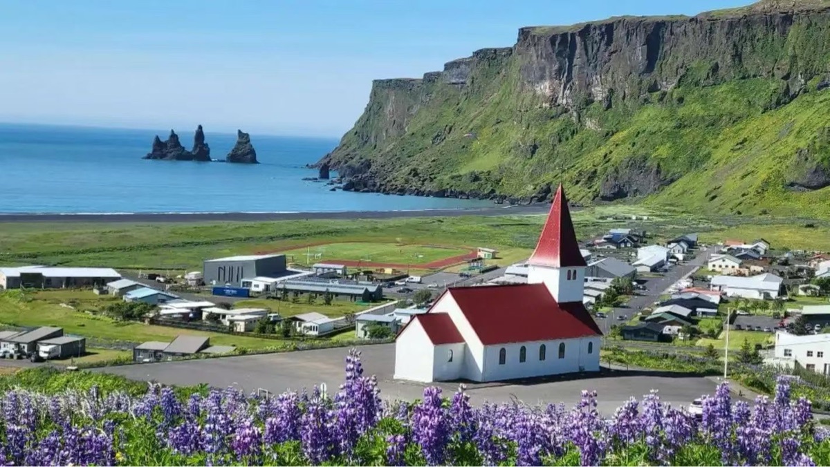 行至维克镇,雷尼斯黑沙滩绝对是不容错过的奇观。纯黑的沙滩细腻柔软,与湛蓝的海水形成极致的色彩对比,岸边的玄武岩石柱排列整齐,历经千万年海浪冲刷,棱角分明,造型奇特。大西洋的海浪不断拍打着海岸,汹涌澎湃,黑色的沙滩在海浪的冲刷下更显神秘冷峻,站在这里,仿佛置身于异世界,感受着大自然的鬼斧神工,也惊叹于这片土地的独特与狂野。