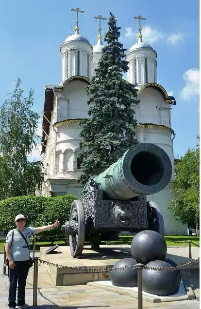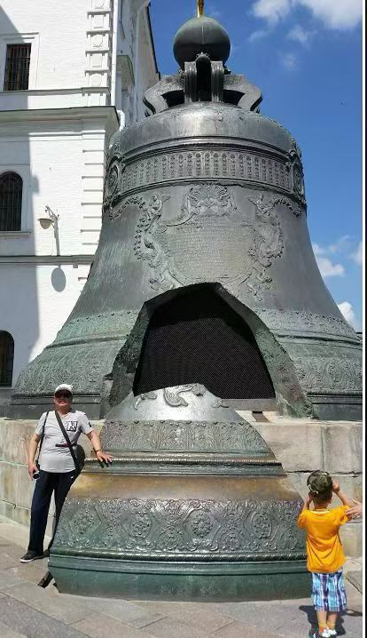最先吸引我的是大钟王,它静静伫立在庭院中,青铜表面的纹路里还嵌着当年铸造时留下的裂痕。讲解员说,这座重达200多吨的巨钟,本是彼得大帝为彰显国力而造,却在铸造完成后遭遇火灾,坠落的碎片让它永远失去了发声的机会。我抬头望着钟身上精致的浮雕,那些圣经故事里的人物仿佛在低语,诉说着那个时代的辉煌与遗憾。