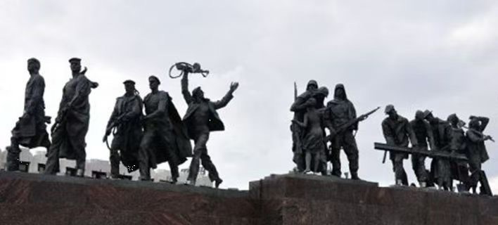 广场中央,那座高达48米的胜利纪念碑直插云霄,青铜铸就的士兵雕像手持利剑,目光坚定地望向远方,仿佛仍在守护着脚下的土地。碑座上的浮雕生动再现了列宁格勒保卫战的场景:冻裂的双手紧握着步枪,瘦弱的妇女推着弹药车,孩子们在废墟中传递着情报——每一道纹路里,都藏着生命与信念的较量。我俯身触摸那些冰冷的浮雕,指尖却似乎能感受到炮火的余温,耳边隐约响起了《喀秋莎》的旋律,那是被围困的872天里,列宁格勒人用生命唱响的希望之歌。