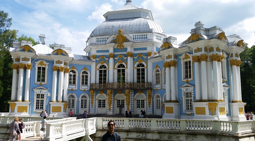 午后的阳光渐渐西斜,温柔地洒在草木与建筑上,把我们的影子拉得很长很长。导游催促集合的声音从远处传来,我才依依不舍地转身,一步步告别夏宫。回望那片金色的宫殿与银色的喷泉,它们在夕阳余晖中镀上了一层柔美的橙红,连空气里都飘着青草与水汽交织的清新气息。这次旅行,不仅让我领略了俄罗斯的皇家气派与自然之美,更让我触摸到了跨越国界与语言的人文温度——那些不经意的相遇、真诚的攀谈,就像夏宫的喷泉一样,在记忆里留下清凉而璀璨的印记,岁岁年年,始终鲜活难忘。