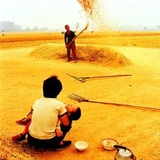 看到这组儿时农村农忙收割打场的老照片,记忆的闸门瞬间被冲开,那些滚烫的、带着泥土与麦香的岁月,一下子鲜活地涌了回来。那是一段被阳光和汗水浸透的时光。金黄的麦浪在风中翻滚,像一片无边无际的海洋,镰刀划过,发出“唰唰”的清脆声响,那是丰收最动听的序曲。大人们弯着腰,汗水顺着黝黑的脊背滑落,砸在滚烫的土地上,瞬间蒸发。我们这些半大的孩子,也成了农忙的小帮手,跟在大人身后捡拾掉落的麦穗,或是用小竹耙把散落的秸秆归拢,虽然动作笨拙,却也忙得不亦乐乎,脸上、身上沾满了麦芒和尘土,却笑得无比灿烂。最热闹的要数打场的场景。空旷的晒场上,堆满了刚收割回来的麦子。石碾子在老牛的牵引下,一圈圈地碾压着麦秆,发出沉闷而有节奏的“咕噜”声。我们则围着石碾子追逐嬉戏,或是在麦秸堆里捉迷藏,阳光透过麦秸的缝隙洒下来,在地上投下斑驳的光影,空气中弥漫着麦秸的清香和尘土的味道。傍晚时分,扬场开始了,木锨扬起,金黄的麦粒在空中划出一道优美的弧线,随风落下,杂质被吹向远方,留下饱满的麦粒,那是一年辛劳最实在的回报。如今,收割机取代了镰刀,现代化的设备让农忙变得轻松快捷,再也看不到那样热火朝天的场面。但每当看到这些照片,儿时农忙的场景便会清晰地浮现在眼前,那是刻在骨子里的记忆,是最质朴、最温暖的乡愁。那些在打场上奔跑的日子,那些和家人一起劳作的时光,早已成为生命中最珍贵的宝藏,无论走多远,都永远不会忘记。